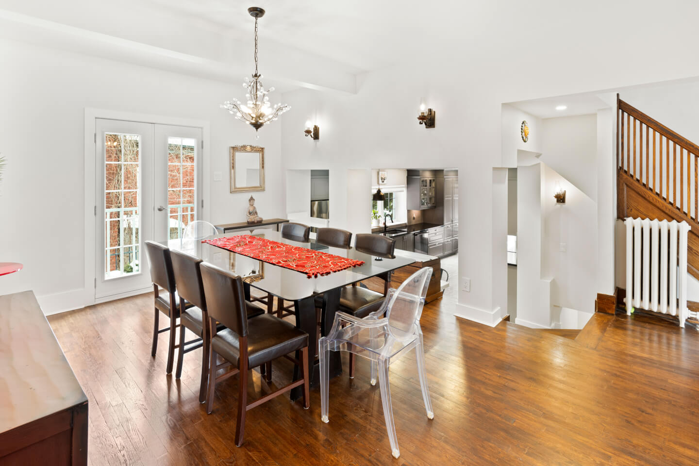 Spacieuse salle à manger avec portes françaises et balcon Juliette