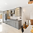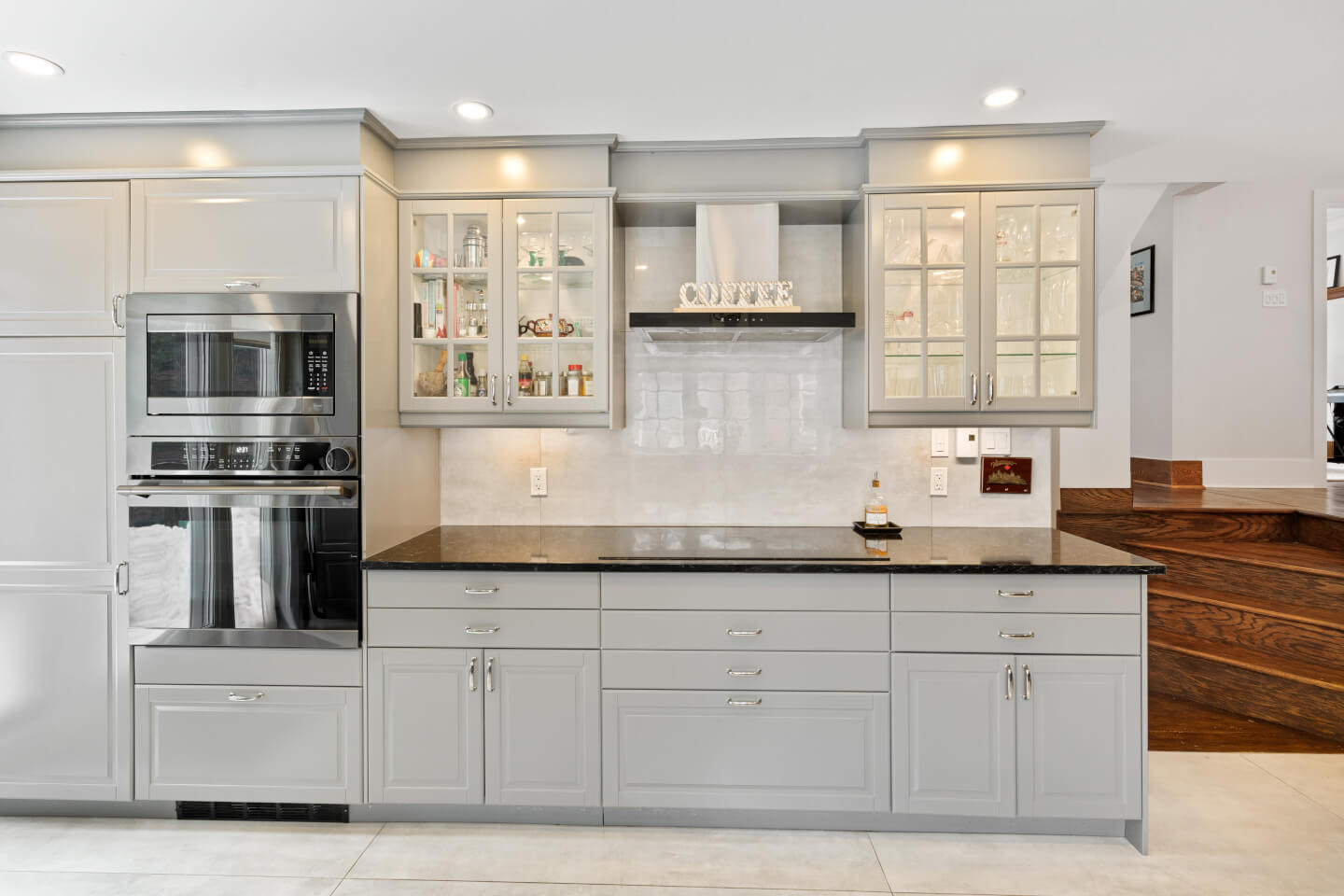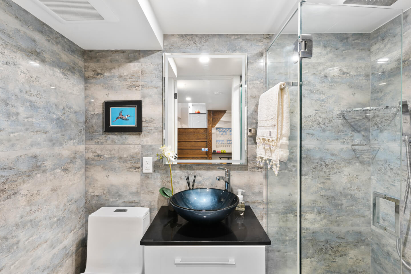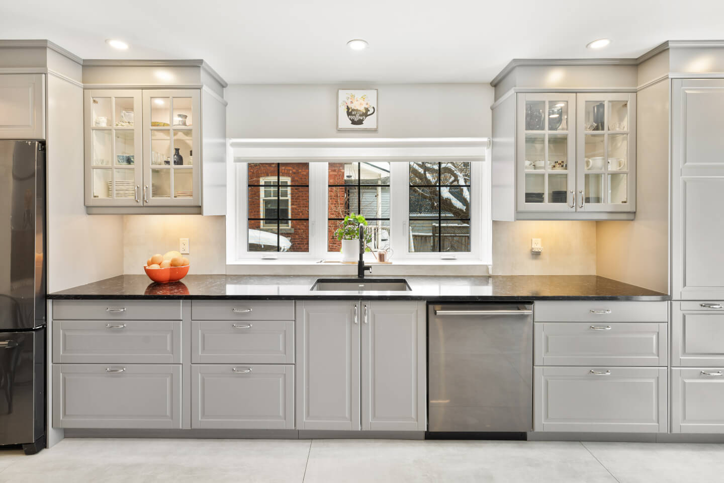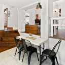 Superbe élégante cuisine soigneusement rénovée en 2020, avec comptoir de quartz, coin repas, plancher chauffant, accès au jardin et une hauteur de 7’8’’!