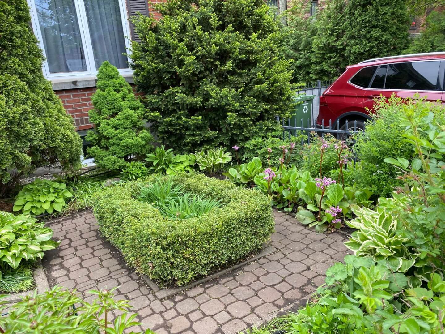 1 stationnement ou 2 voitures en tandem en utilisant l’espace jardin* pavé uni