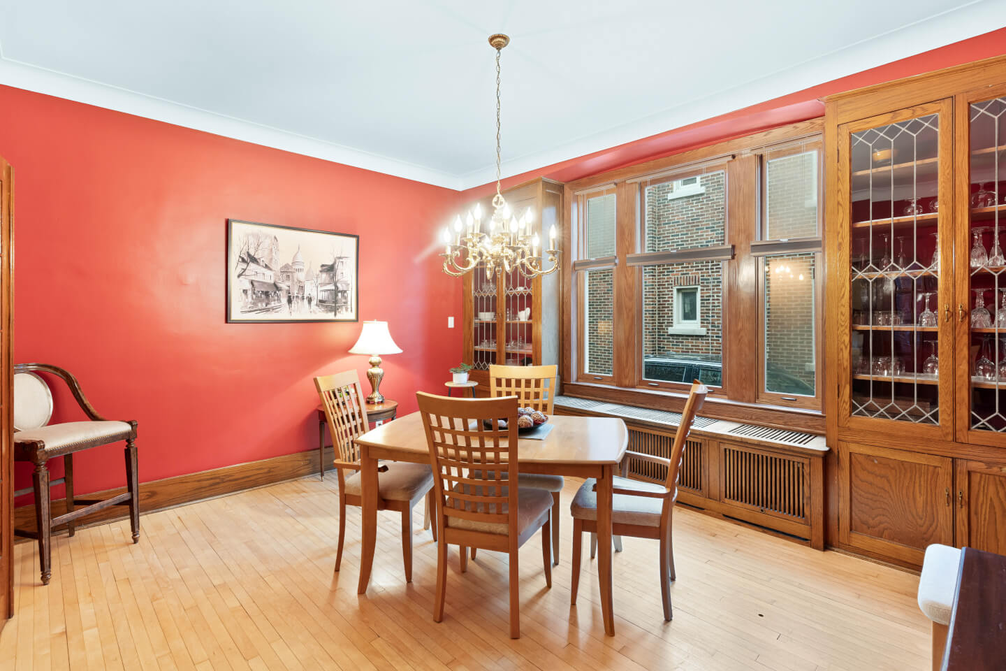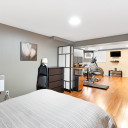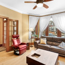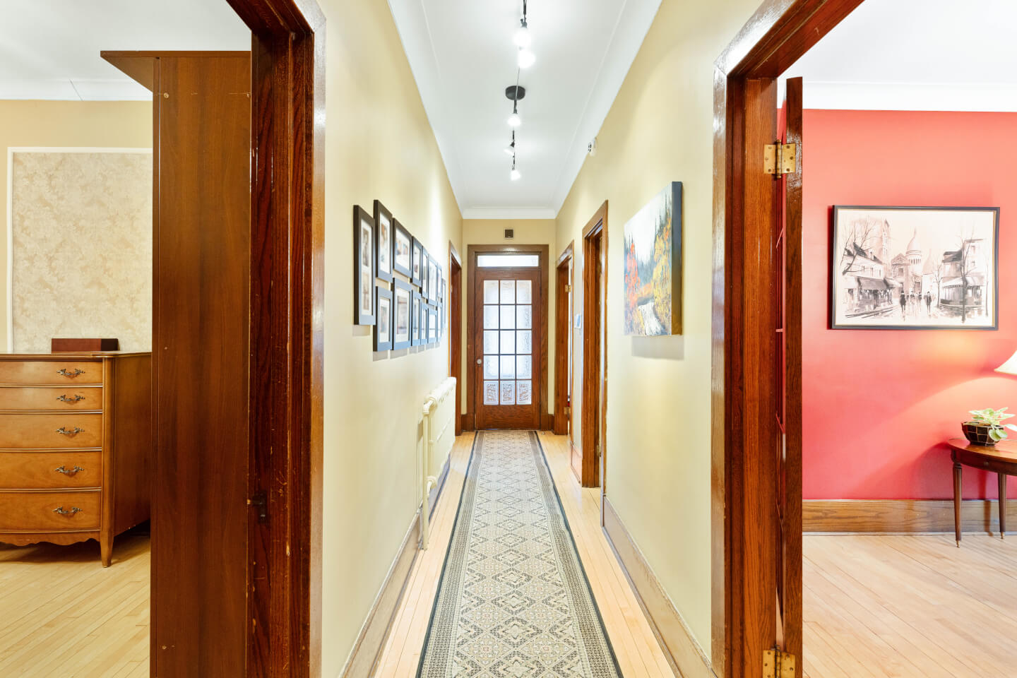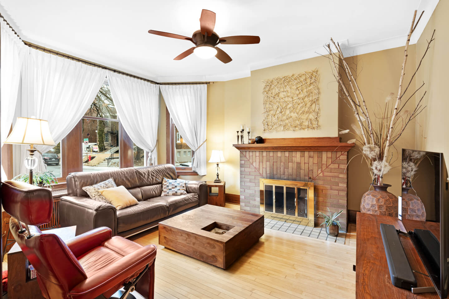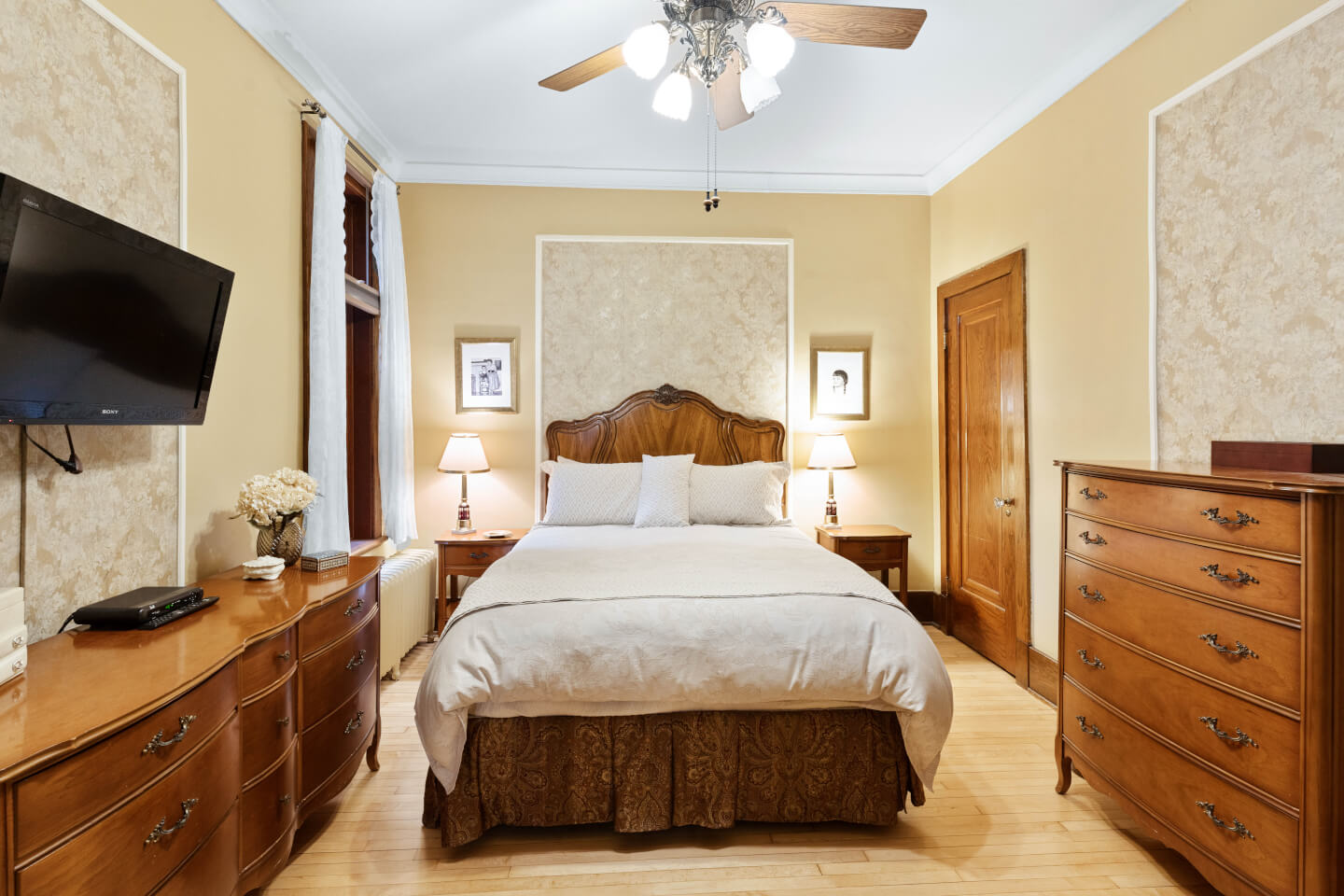 Salon (foyer non fonctionnel selon la loi de la ville de Montréal), portes françaises, fenêtres en baie