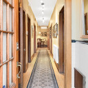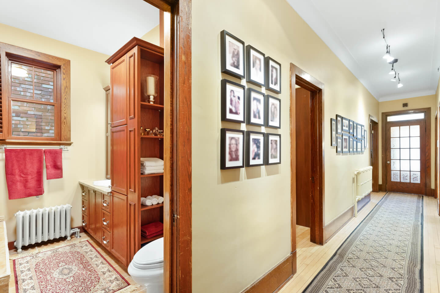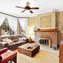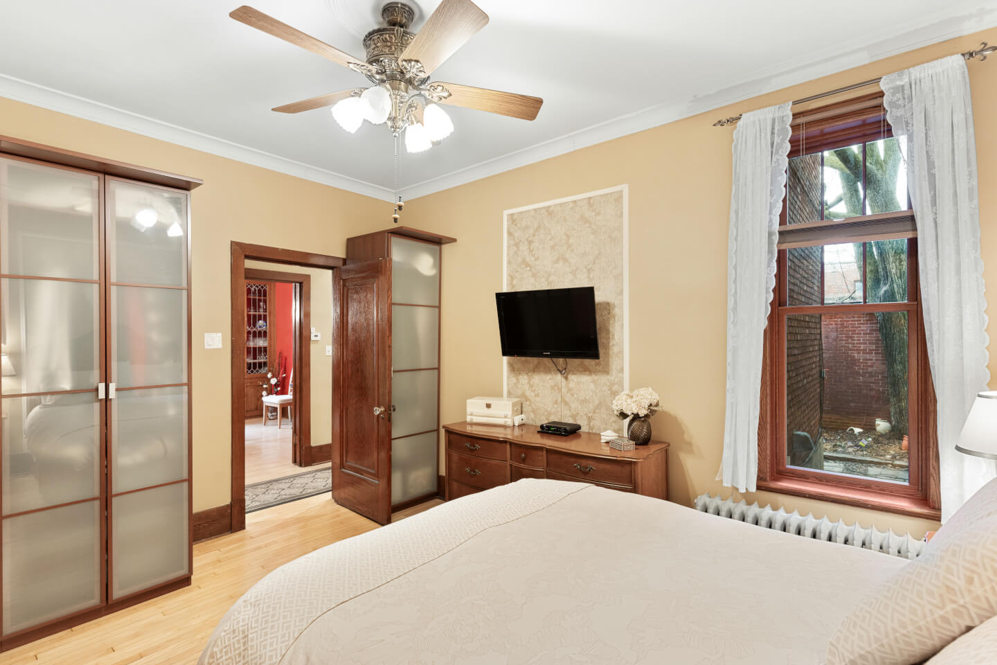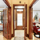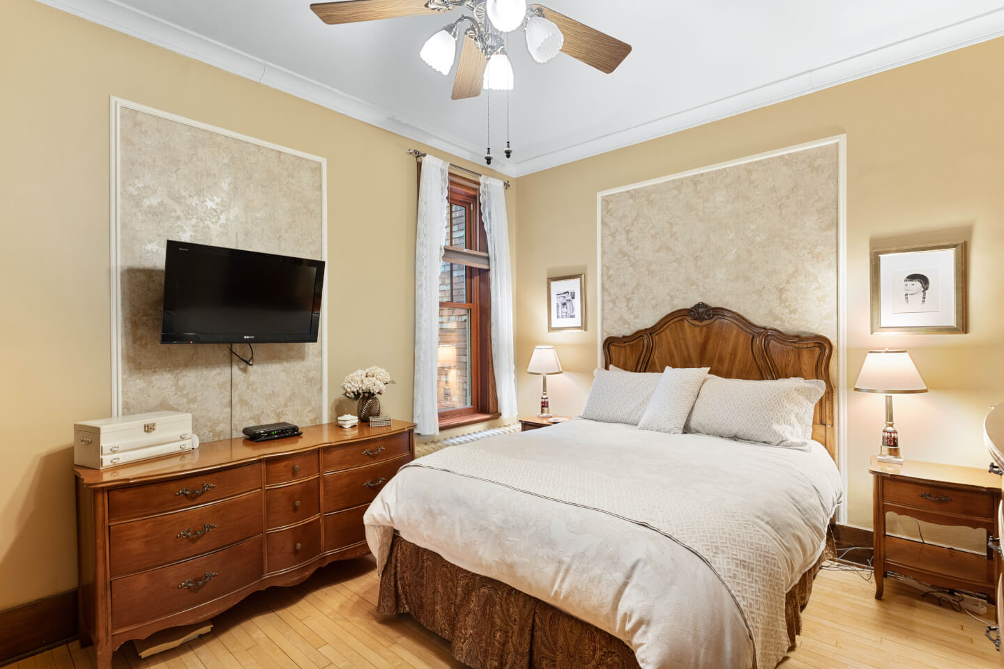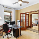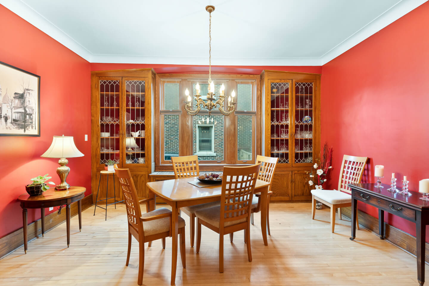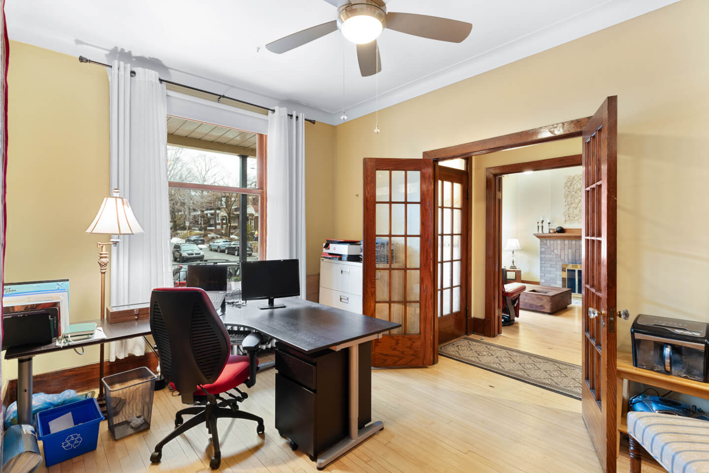 Salon (foyer non fonctionnel selon la loi de la ville de Montréal), portes françaises, fenêtres en baie