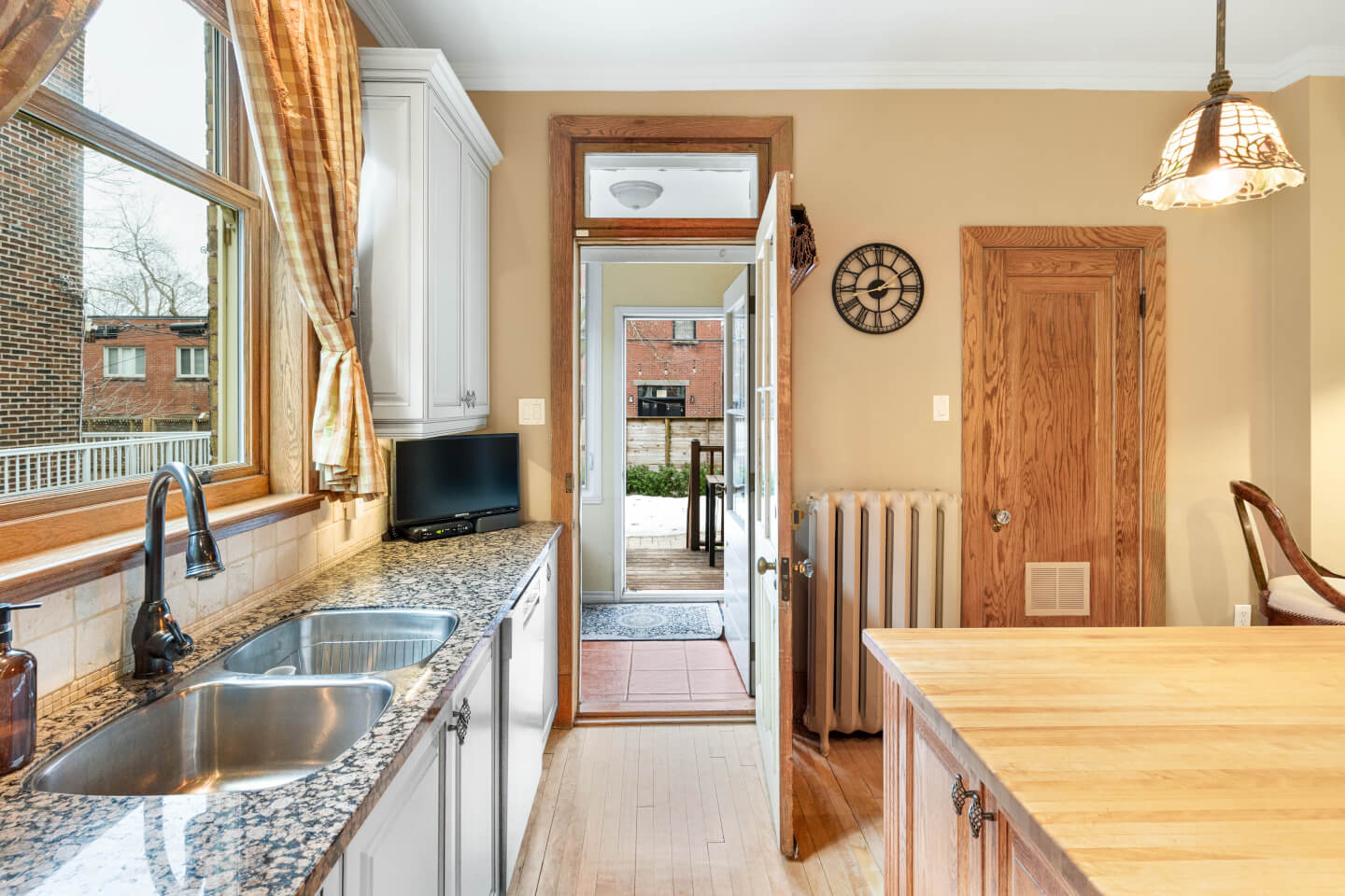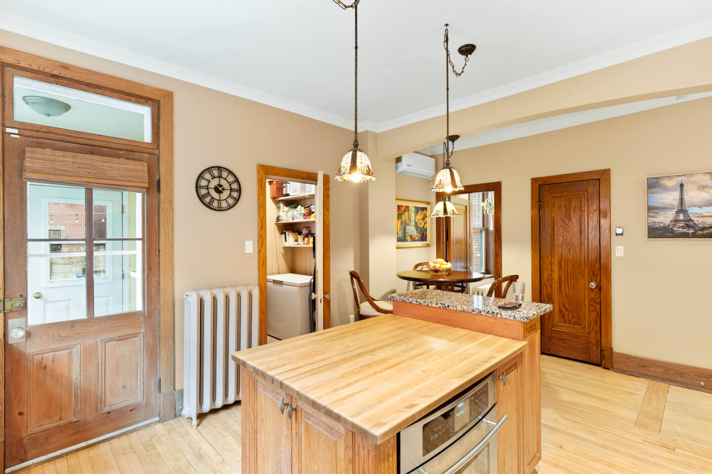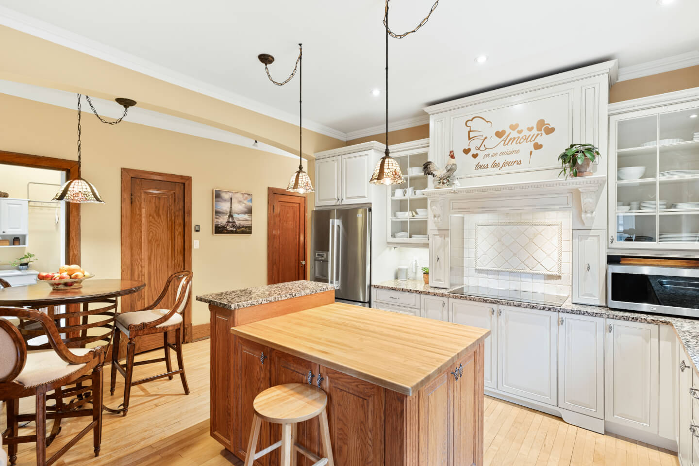 Cuisine de style Toscane, comptoir de granite, ilot central, garde-manger
