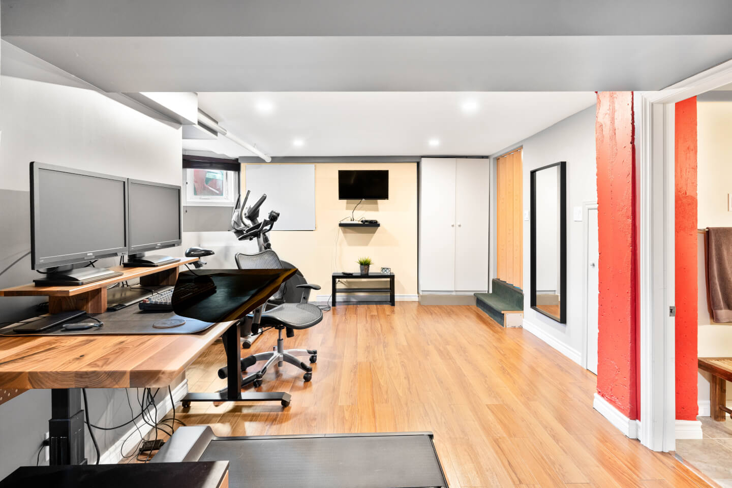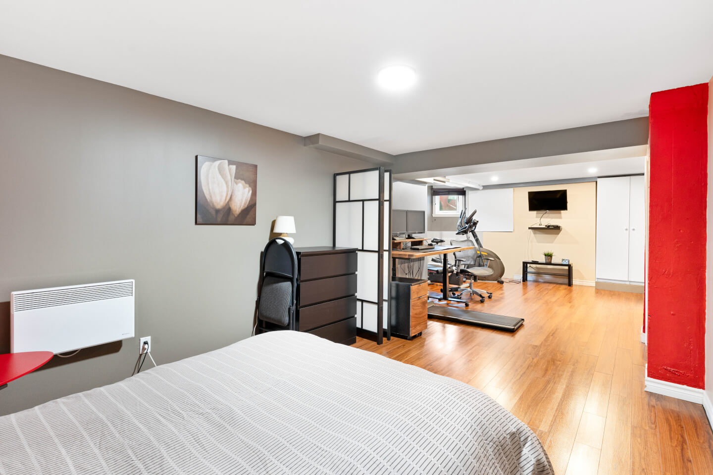 Village Monkland, Magnifique bas de duplex offrant des espaces bien pensés. Salon élégant avec fenêtres en baie, salle à manger, encastrés & cuisine de style Toscane, îlot central, comptoirs en granite et bois, solarium menant à une cour ensoleillée. 2 chambres et 2 salles de bains complètes. Le sous-sol est aménagé avec une salle familiale combinée à une chambre, une SDB & un grand bureau, en plus d’un espace atelier pratique. Une propriété clé en main alliant confort, charme & fonctionnalité, méticuleusement entretenue au fils des années. Garage double et 2 stationnements. A quelques minutes du métro, de la rue Monkland et des écoles.