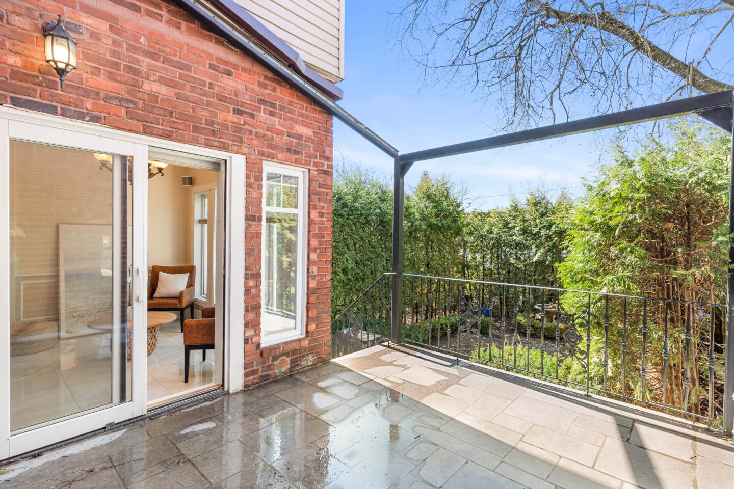 Terrasse menant au jardin et à la ruelle