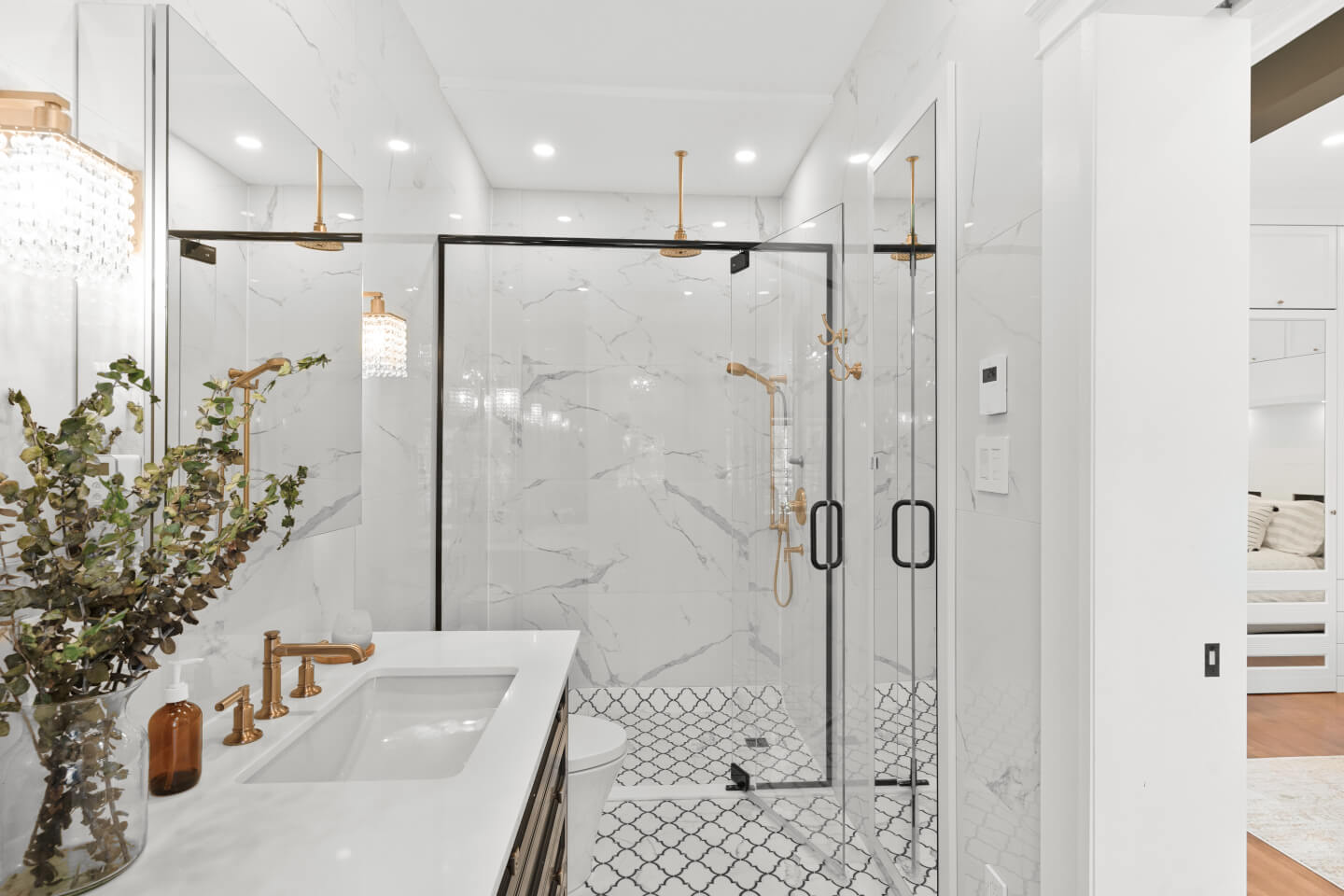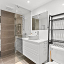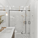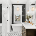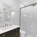 Salle de bains avec plancher radiant