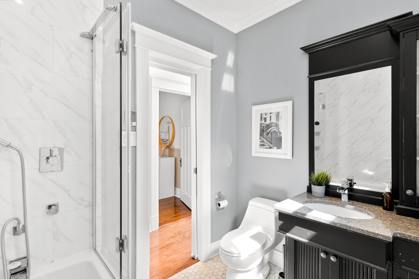 2e étage: plancher de bois franc & céramique chauffante