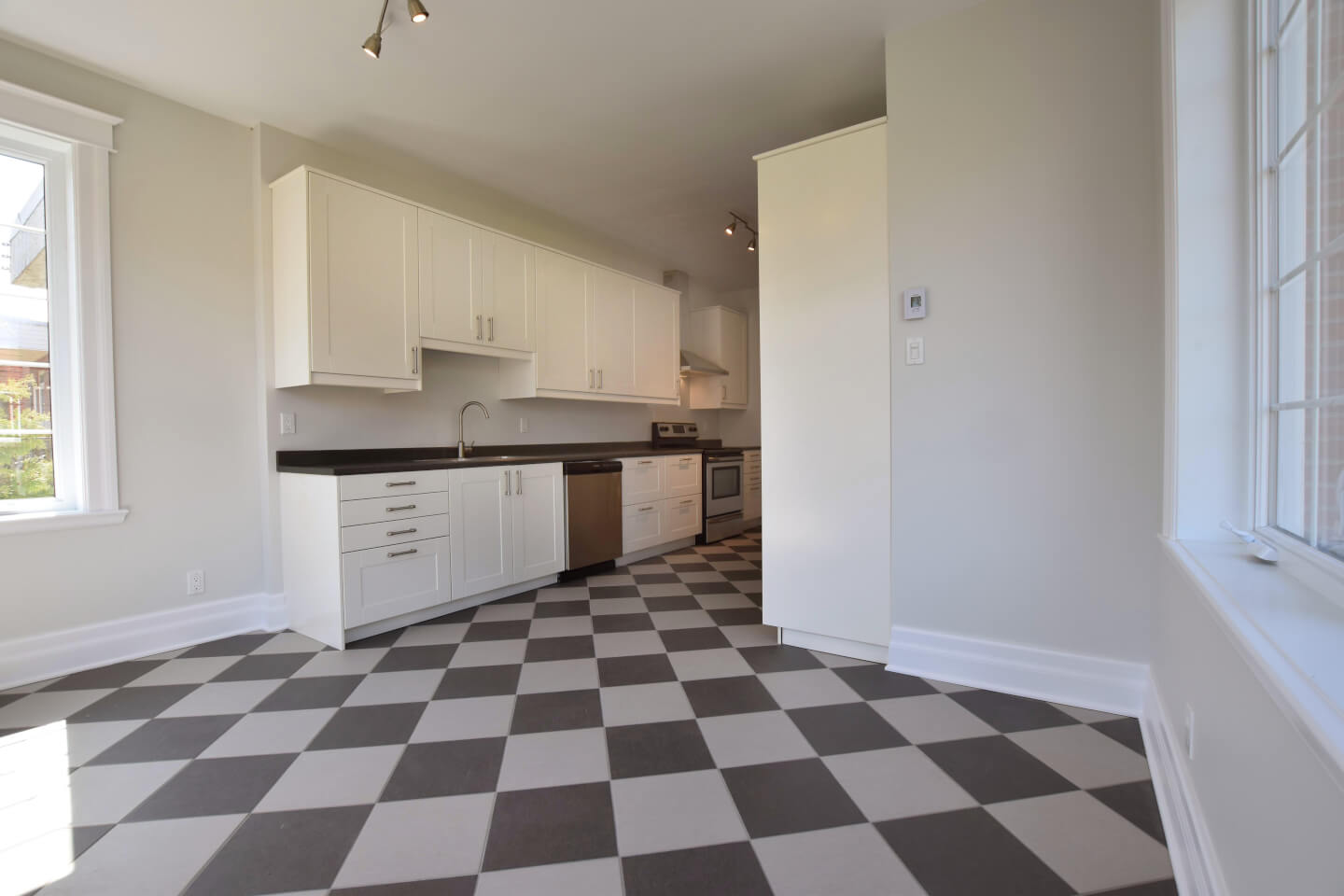 À LOUÉ @ 2100$ Très beau Haut de duplex sur Melrose impeccable avec 2 chambres + bureau, grand salon, salle à manger séparée. Cuisine de rêve 2017 rénovée et de bon goût sur plancher radiant ouvert sur sa dinette /Vivoir/solarium avec vue des jardins avoisinants. Peinture et plancher fraichement fait, tout équipé.