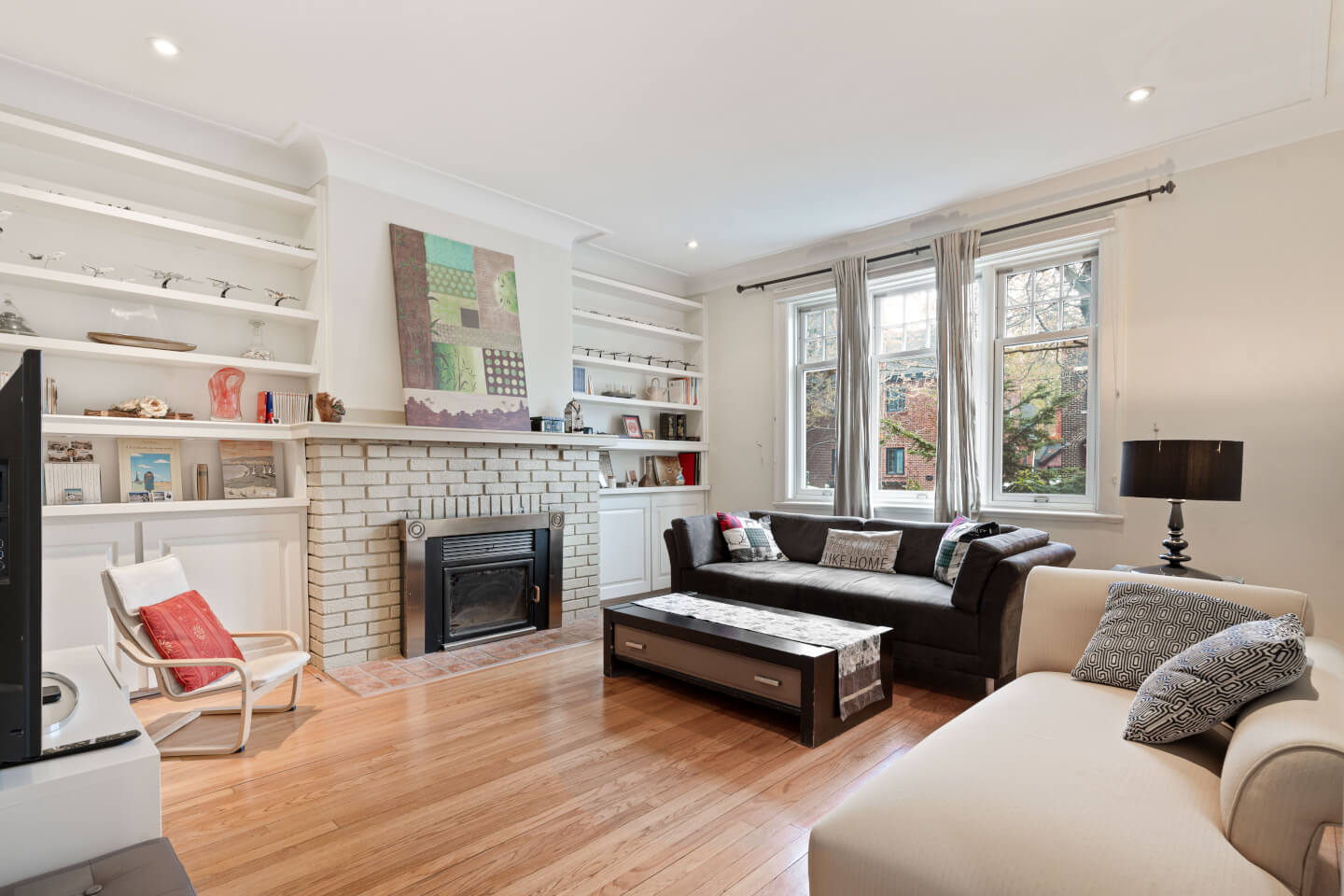 Beau Salon avec foyer à combustion lente à vérifier