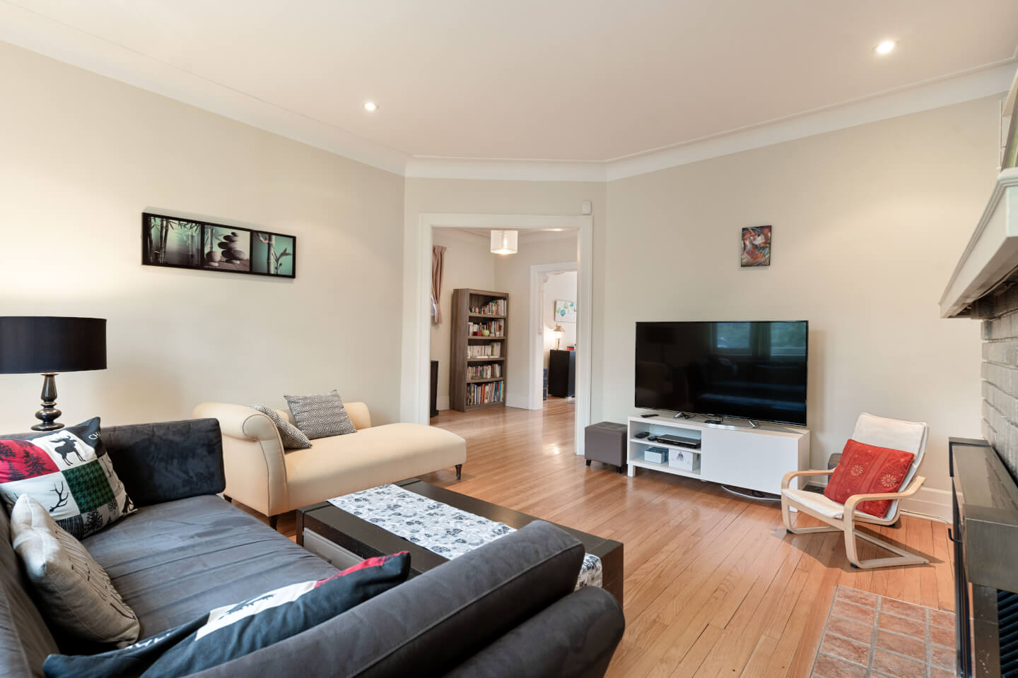 Plancher de chêne au 1er étage et bois franc au 2e étage - Boiseries peintes