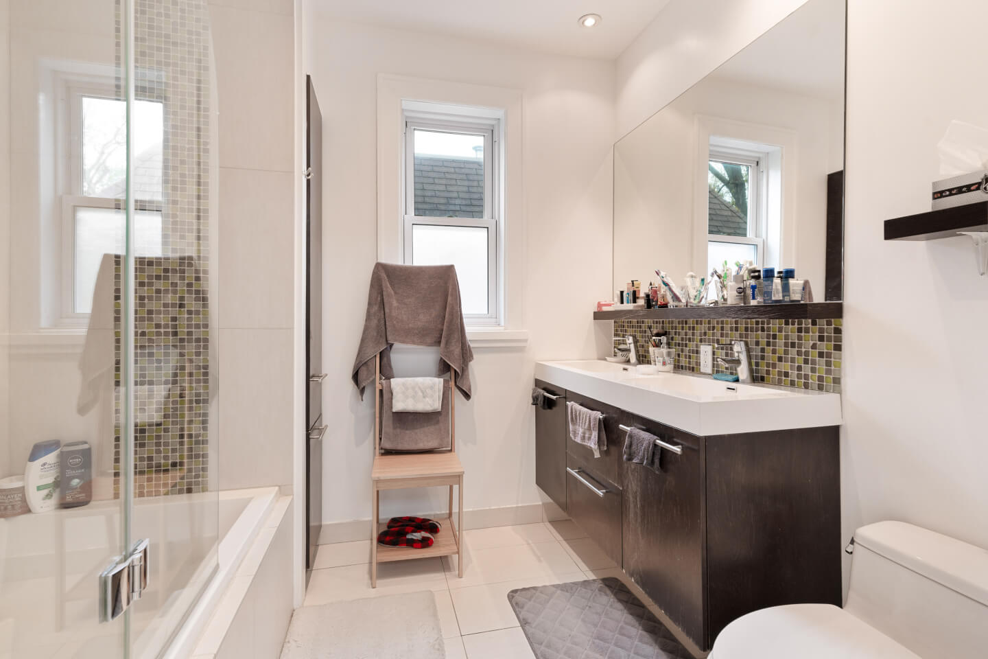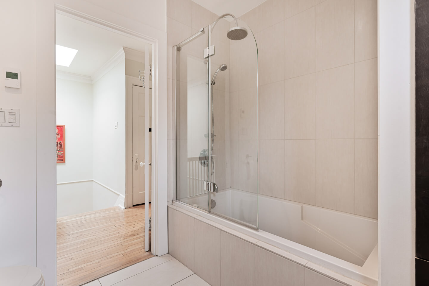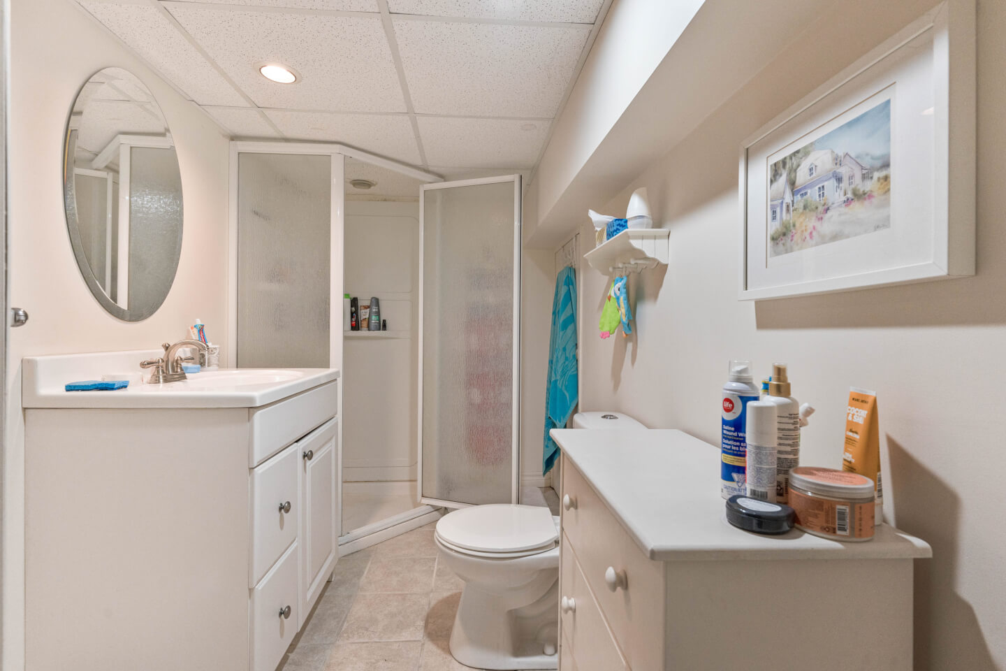 Salle de bains avec douche, plancher céramique