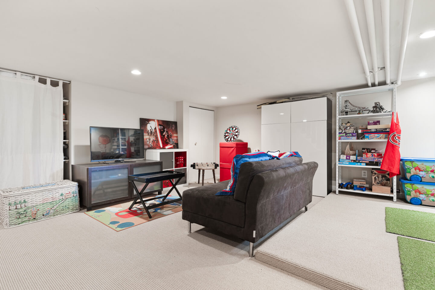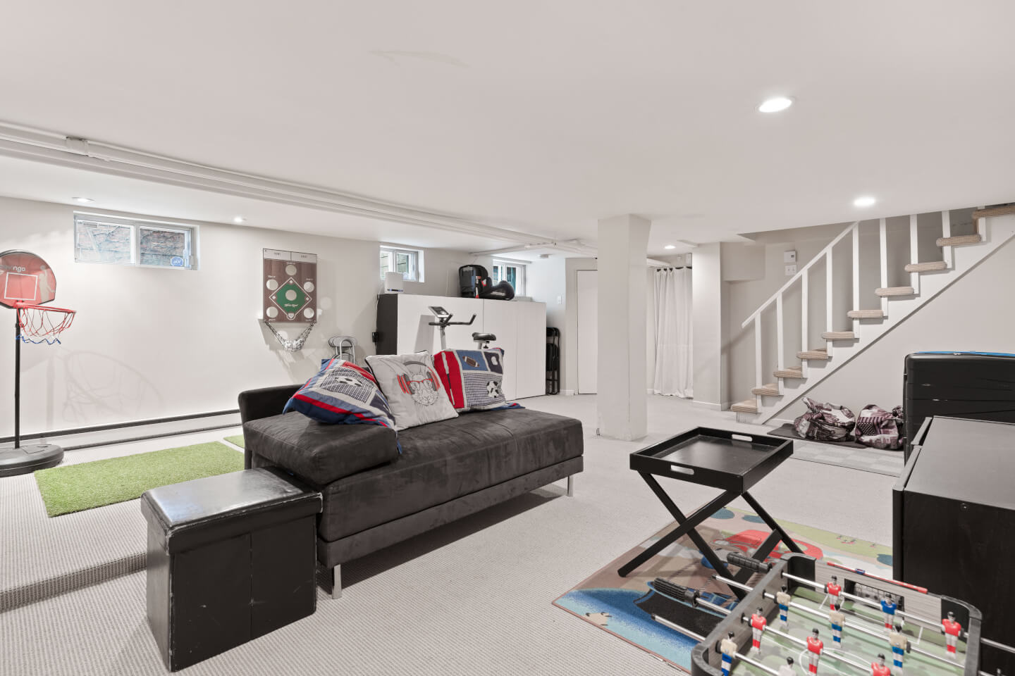Sous-sol fini; grande salle familiale sur tapis