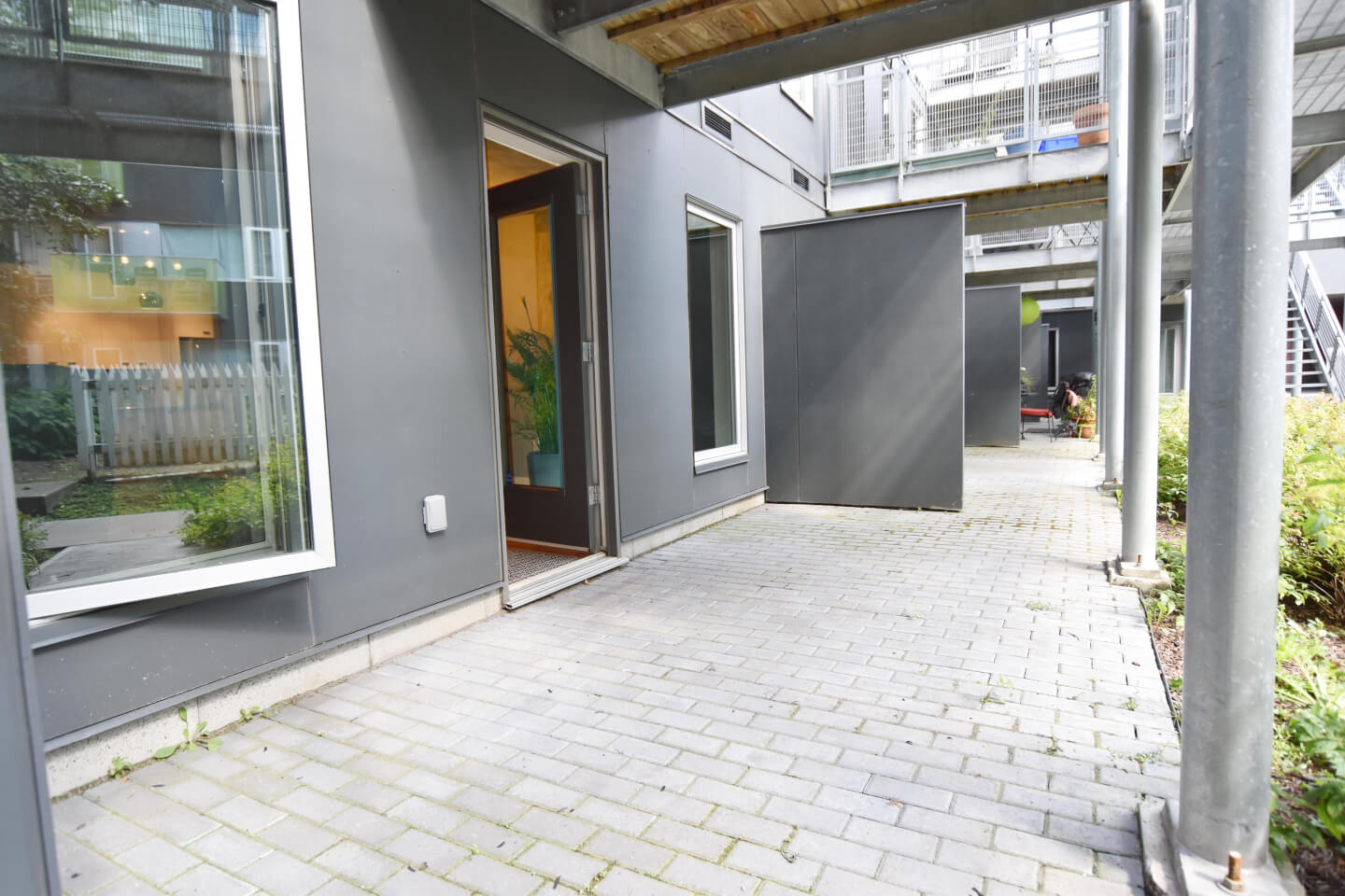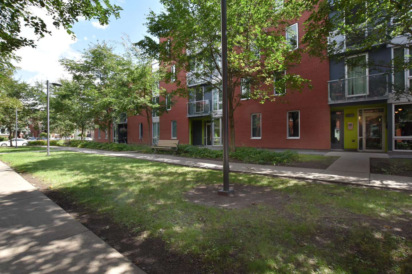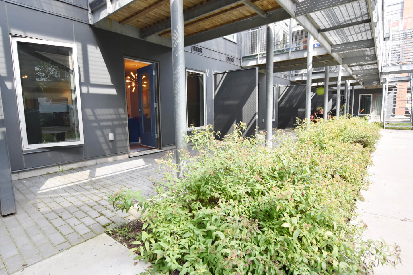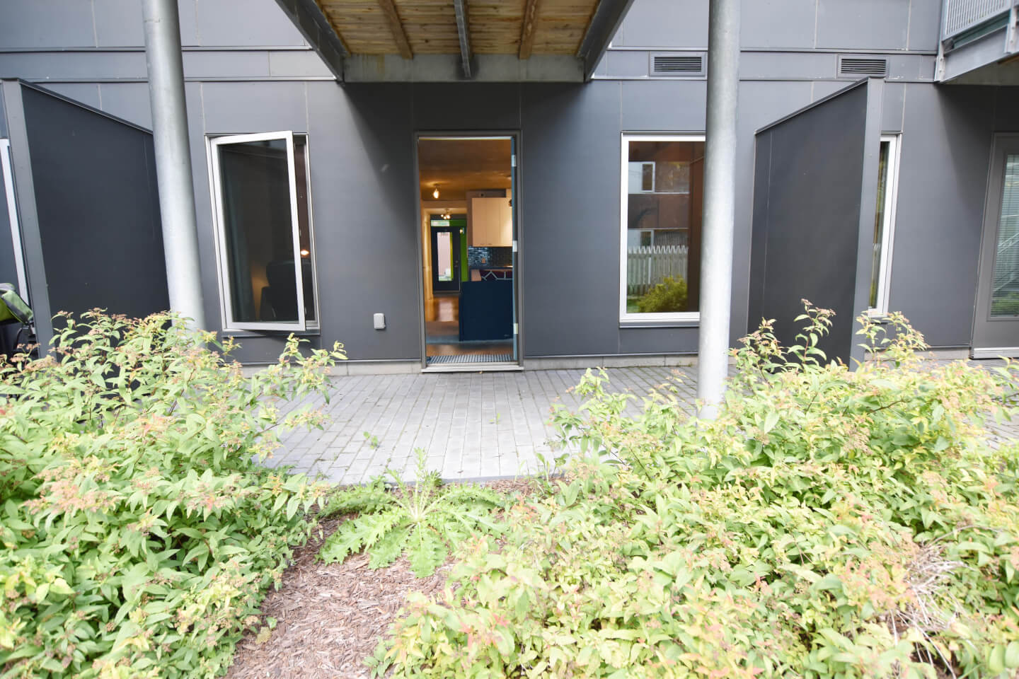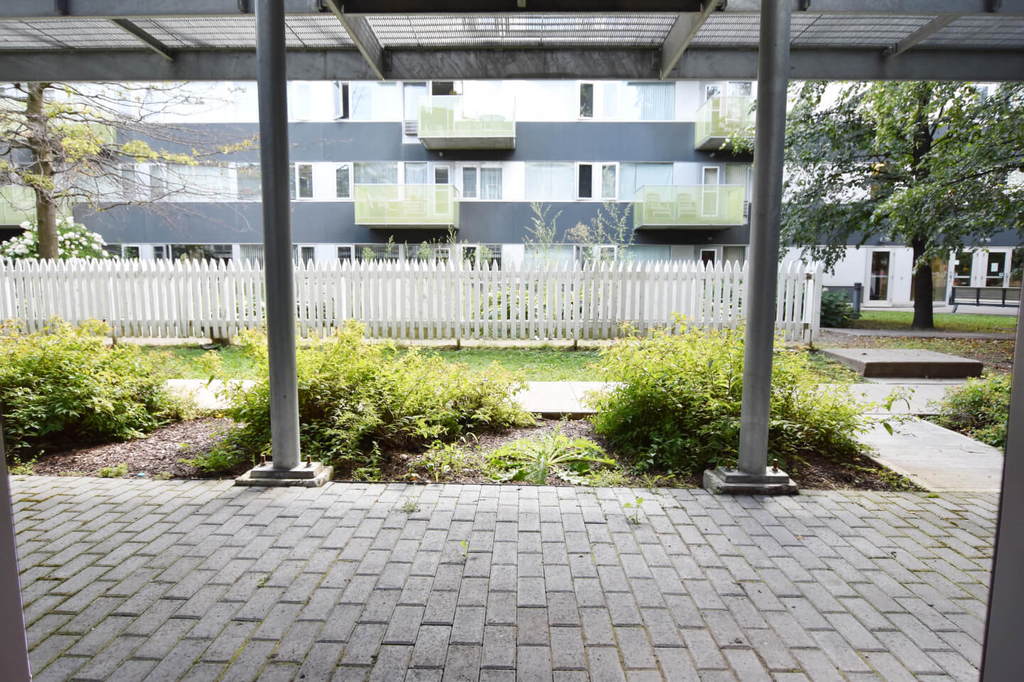 Superbe vue sur les jardins communs. À 2 pas de la Bibliothèque Benny, centre sportif, piscine, parc, CLSC, restaurants et cafés de l’avenue Monkland. Construction en béton de 2009 certifiée Novoclimat. Benny Farm LED- certifiée