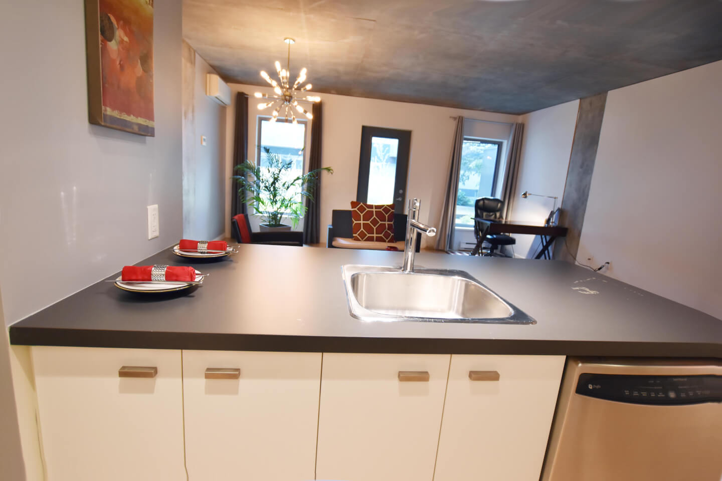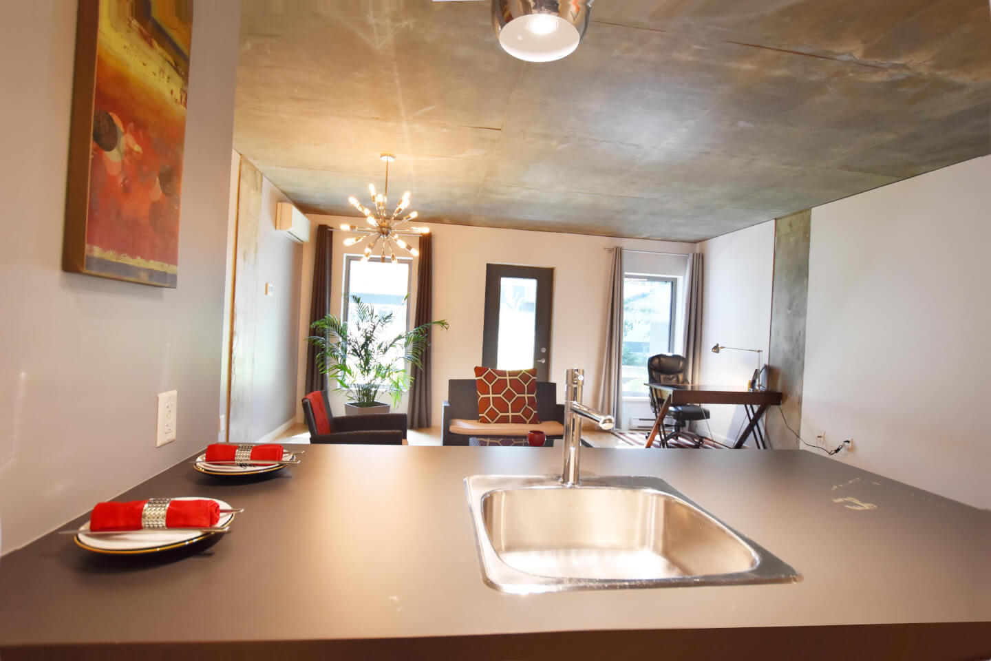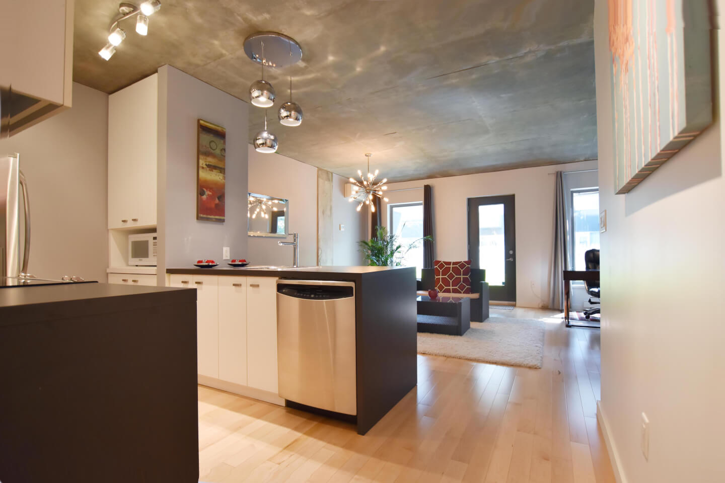 Votre I-PAD CONDO au look industriel aux plafonds et colonnes de béton qui vous offre un parfait 1er achat ou pied à terre d’où son concept ouvert, est une belle réussite.