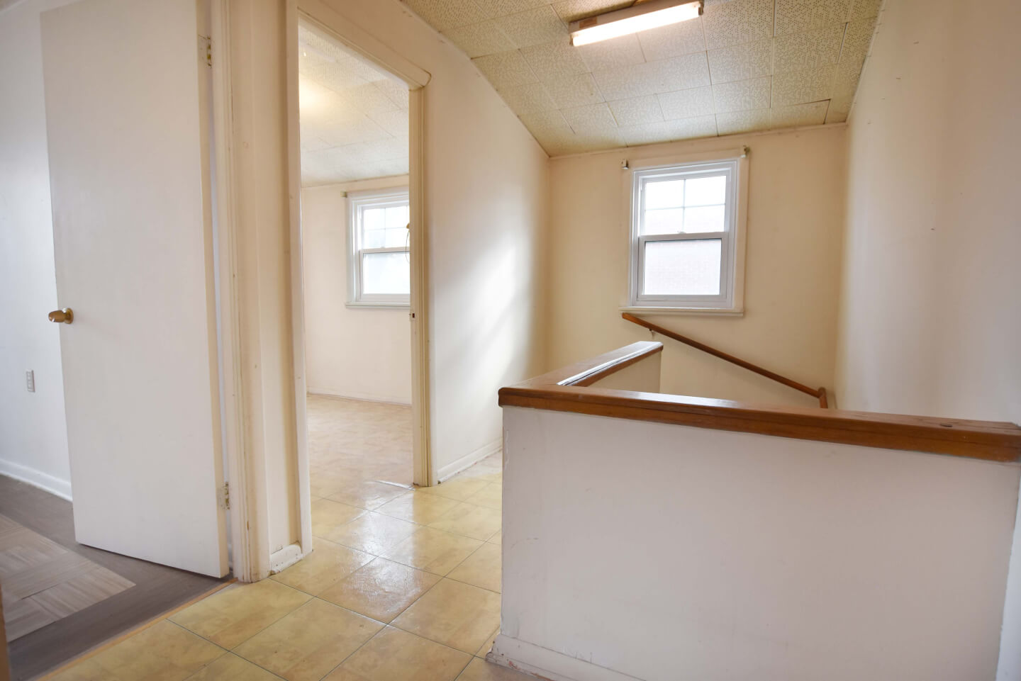 2ième étage : plancher de linoléum et plafond de tuiles acoustiques