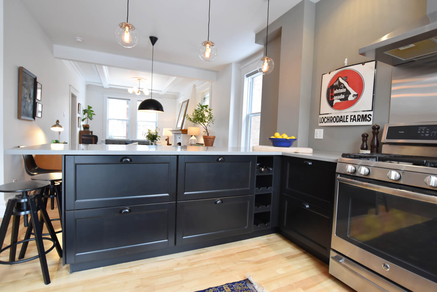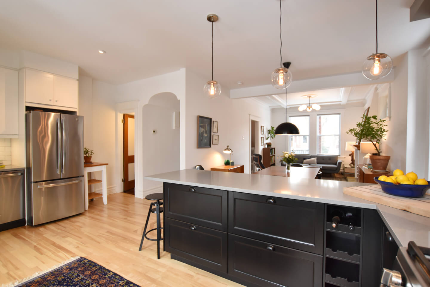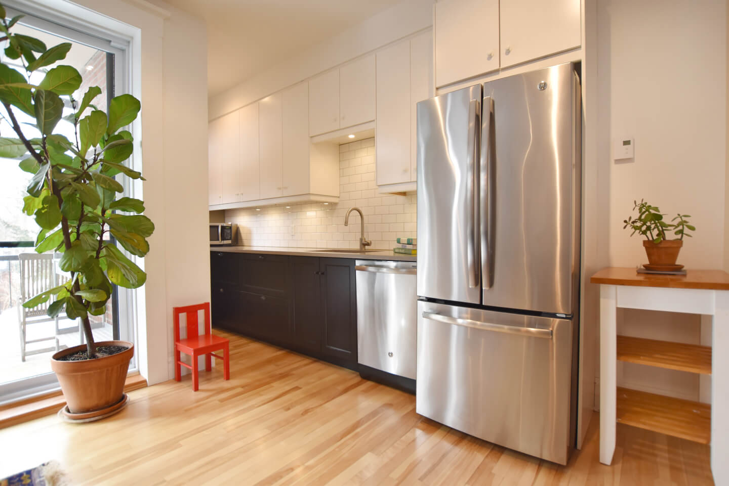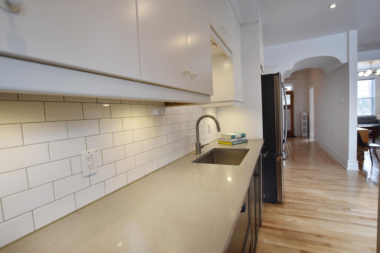 Superbe cuisine (2016), comptoir de quartz, plancher de bois