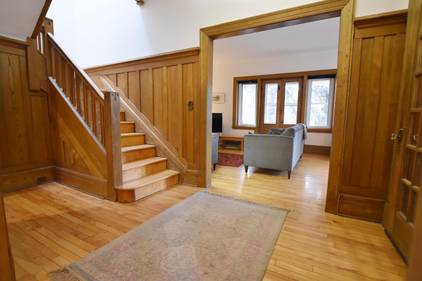 Grandiose hall d’entrée à plan croisé avec lambris de chêne