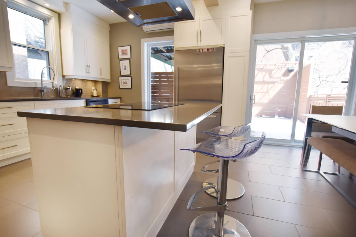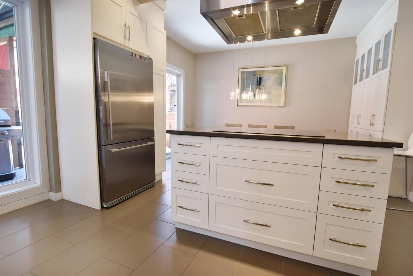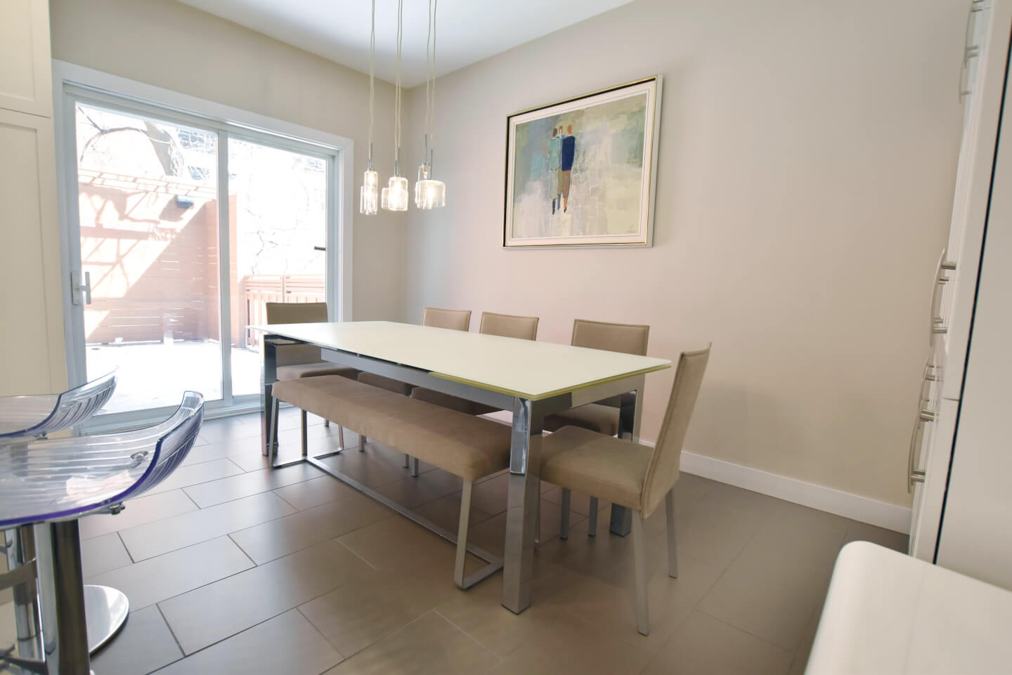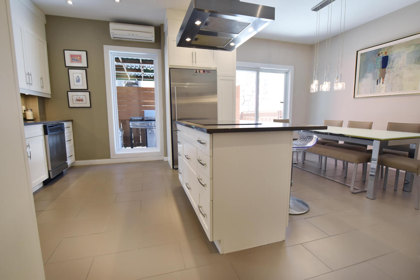 Salle à manger avec porte patio, accès à la grande terrasse