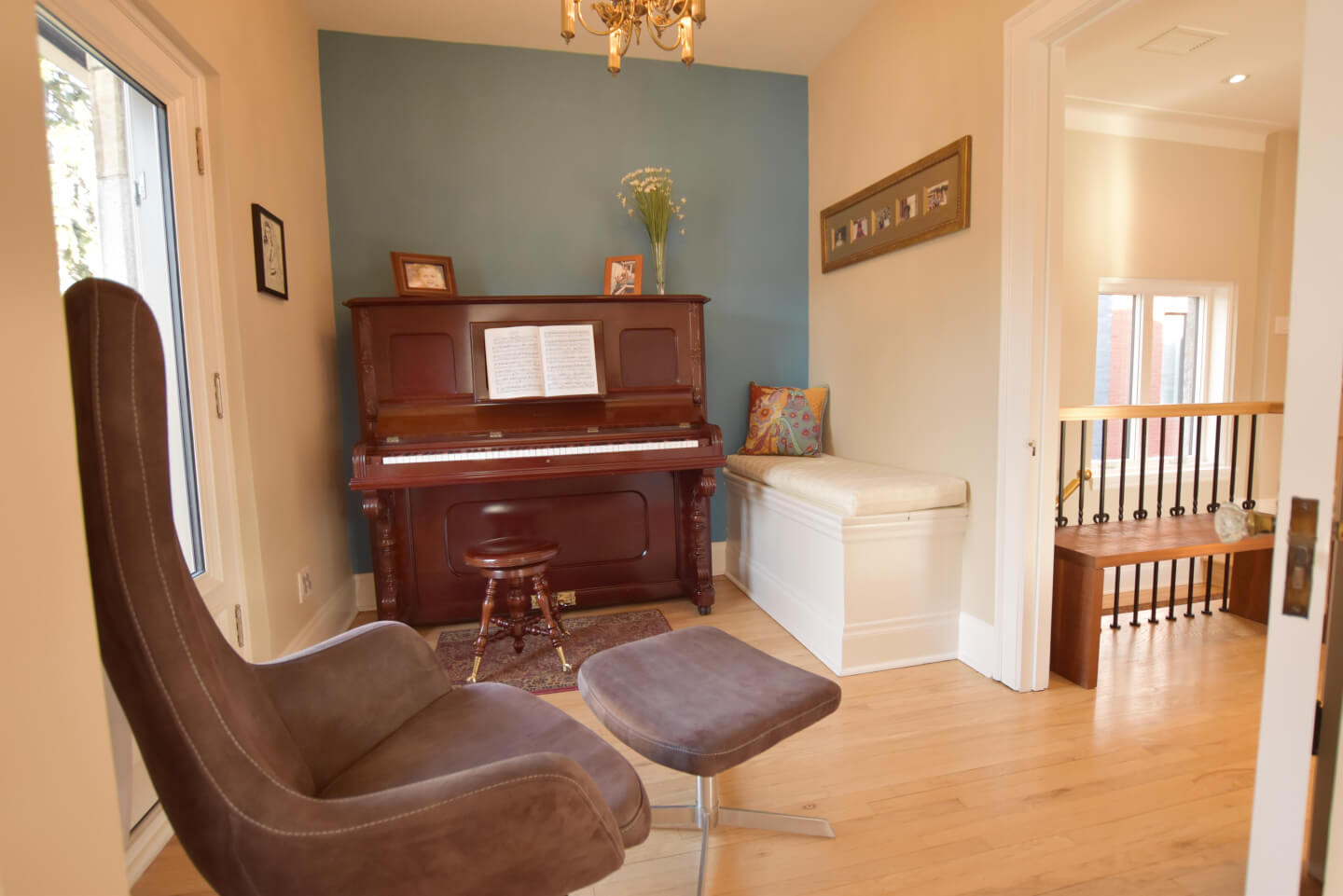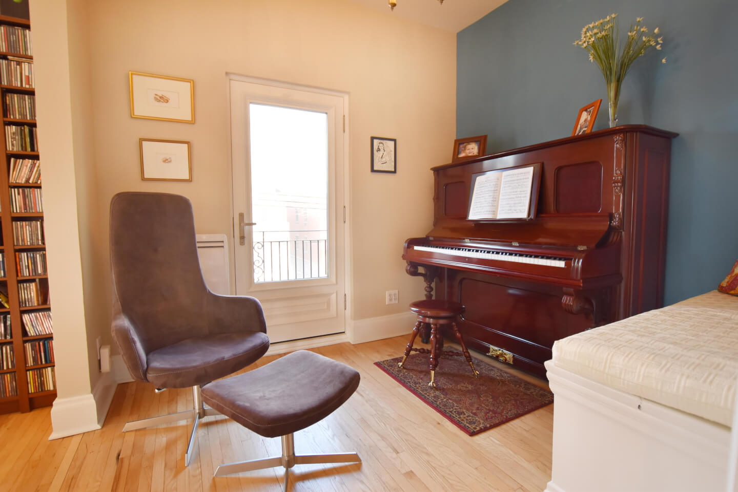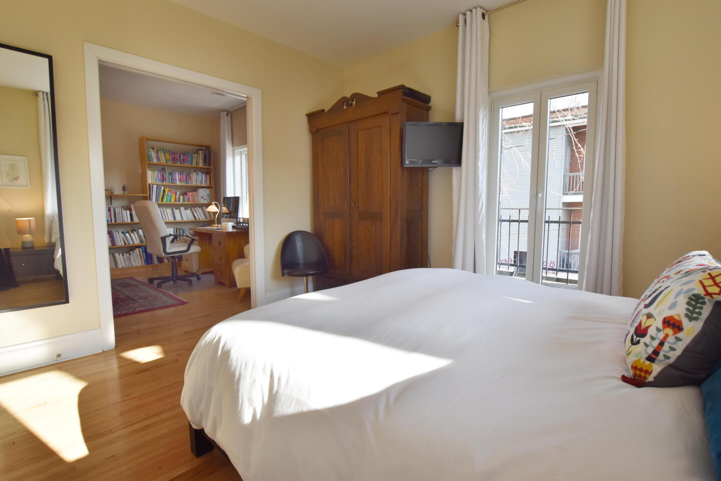 (La chambre des maîtres jouit d’un vivoir - antérieurement la 3ième chambre – et d’un balcon)
