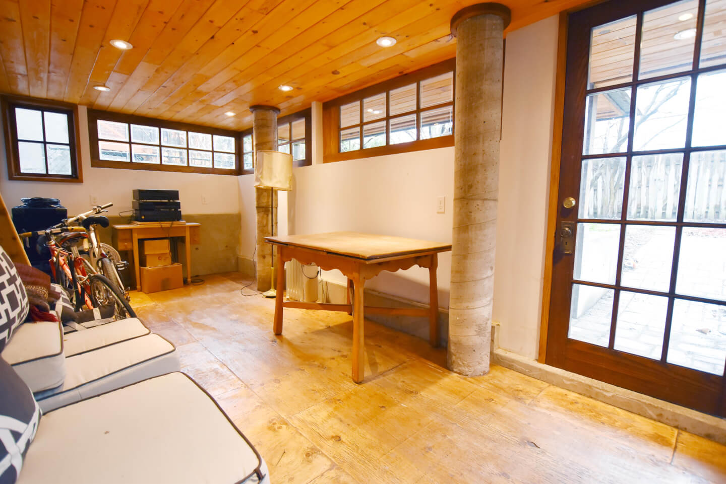 Sous-sol non fini, plancher de contre-plaqué (Grande pièce multifonction, 2011 et rangement)