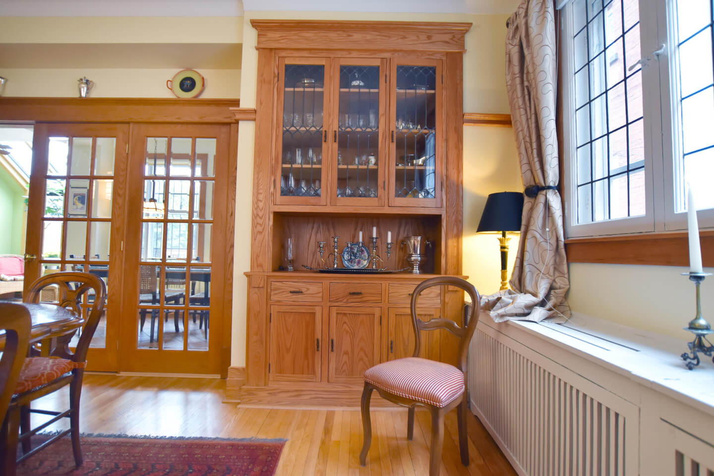 Salle à manger, magnifique vaisselier encastré, et repose assiettes
