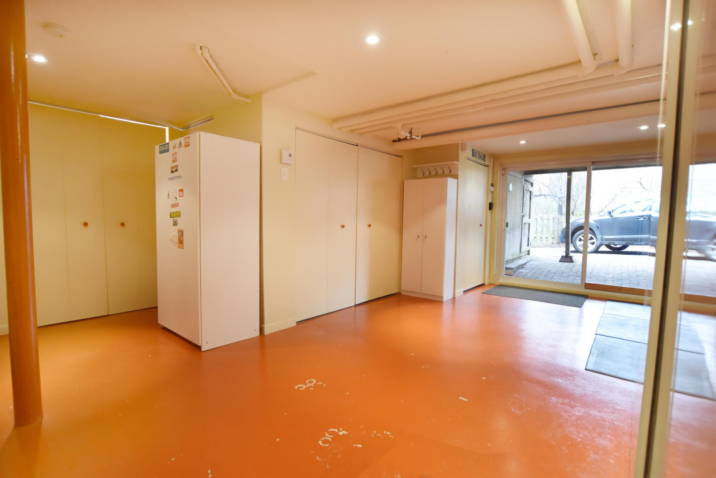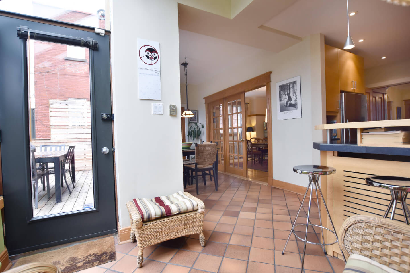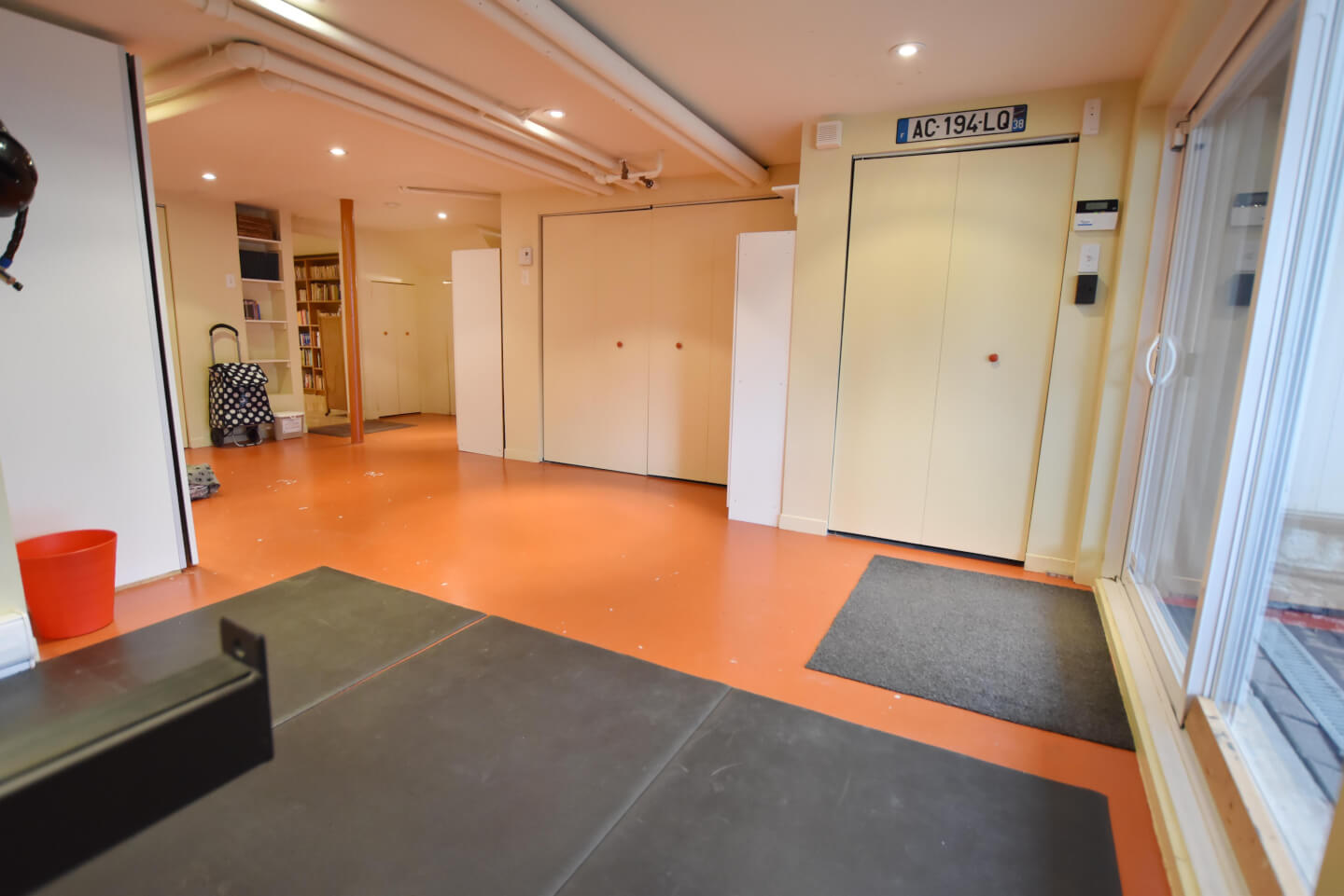 Grande pièce avec porte patio menant au jardin