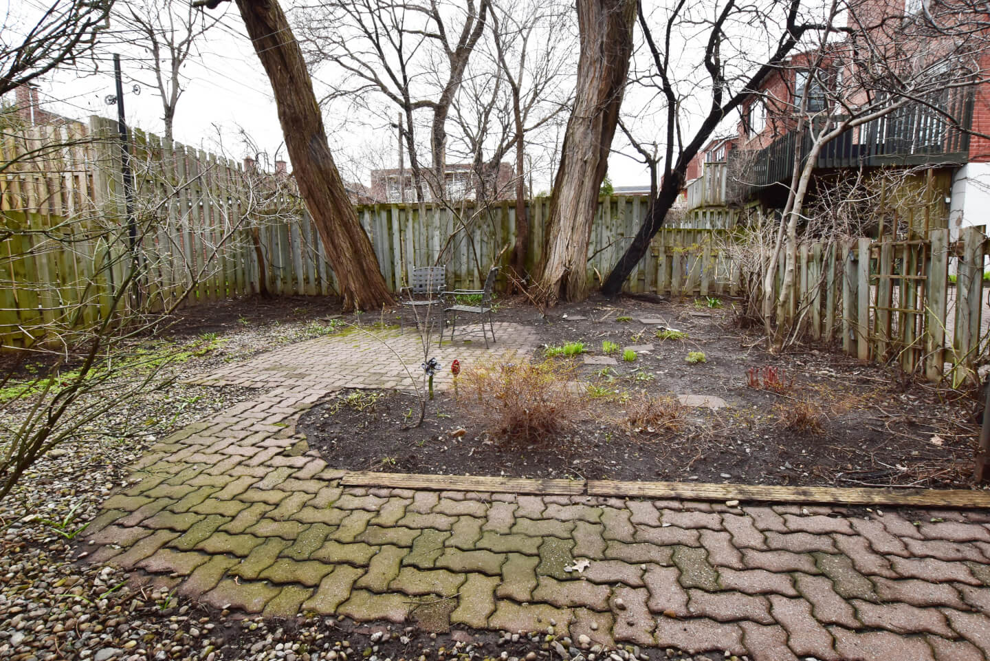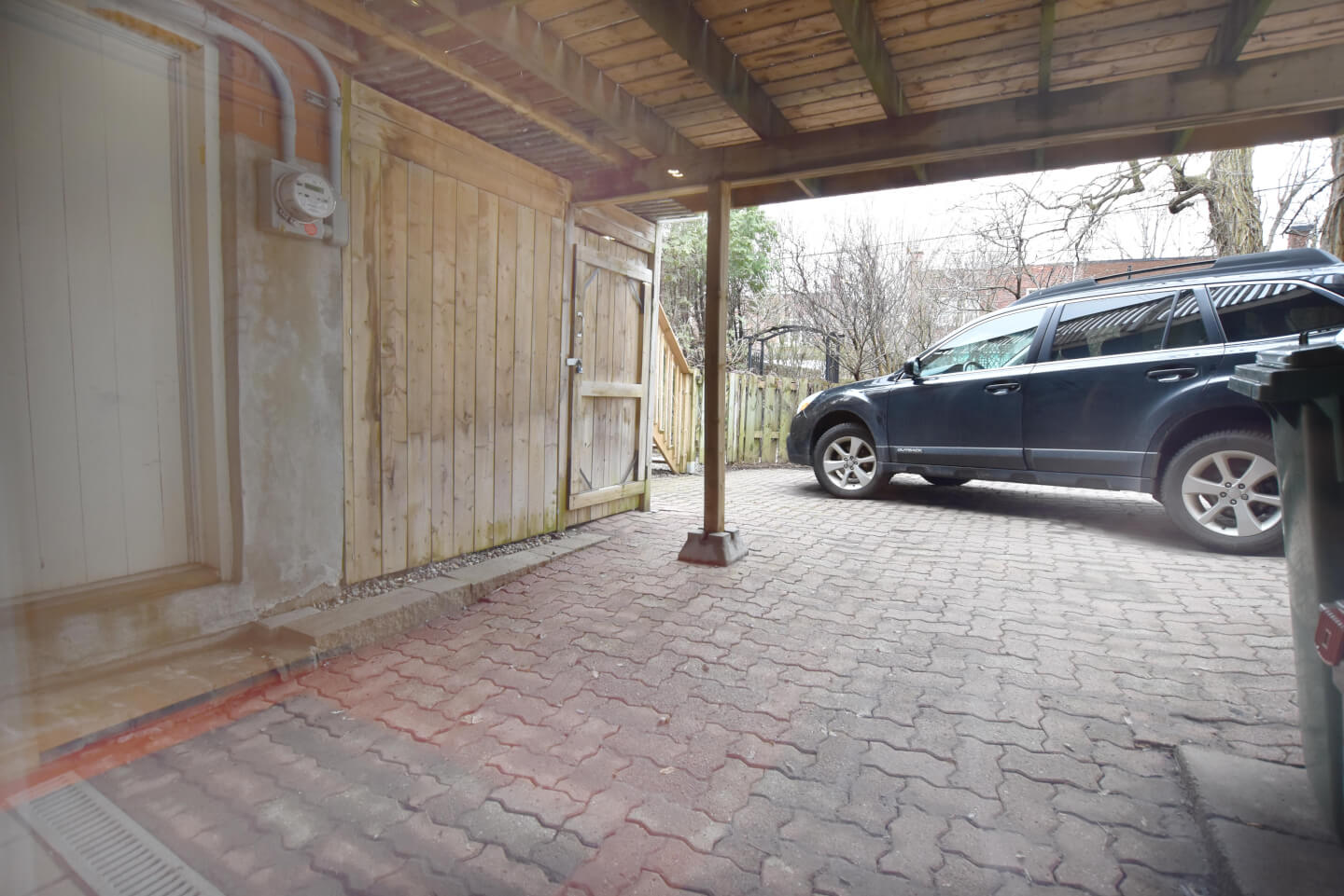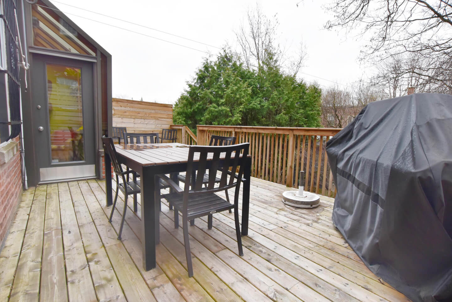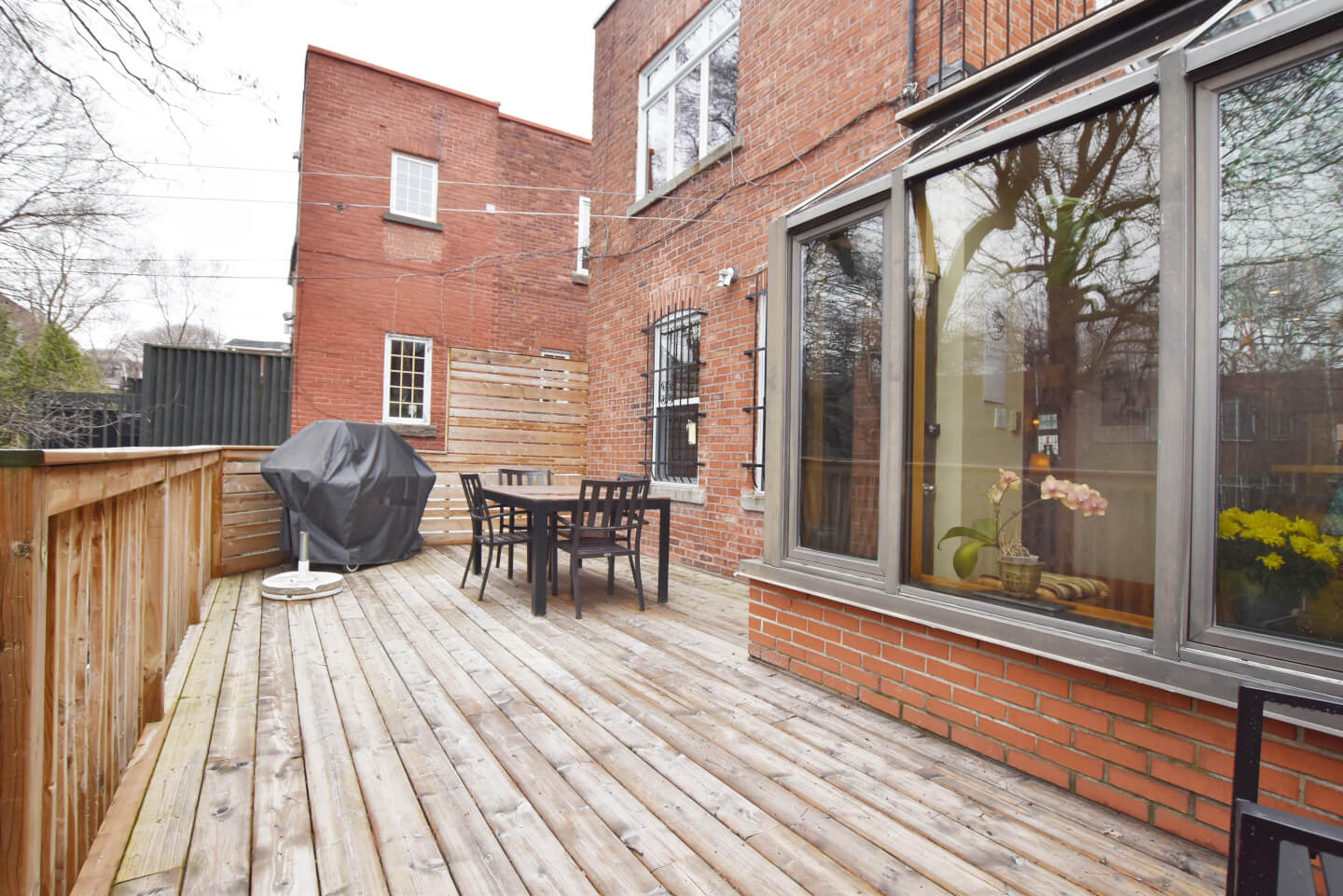 Grande pièce avec porte patio menant au jardin