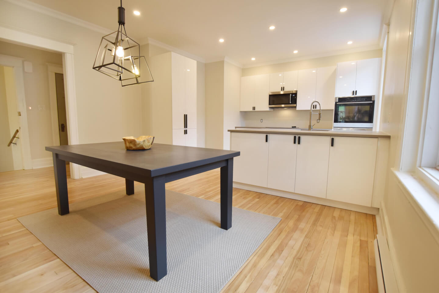 Adjacent Westmount dans le Village Victoria sur Marlowe. Ne cherchez plus, voici un superbe lumineux haut clé en main, avec salon, salle à manger et magnifique cuisine 2019 à plan ouvert en indivise qui vous offre 3 chambres et 2 salles de bains avec planchers radiants. Stationnement partagé avec le bas. À deux pas du CUSM, métro Vendôme et plus.