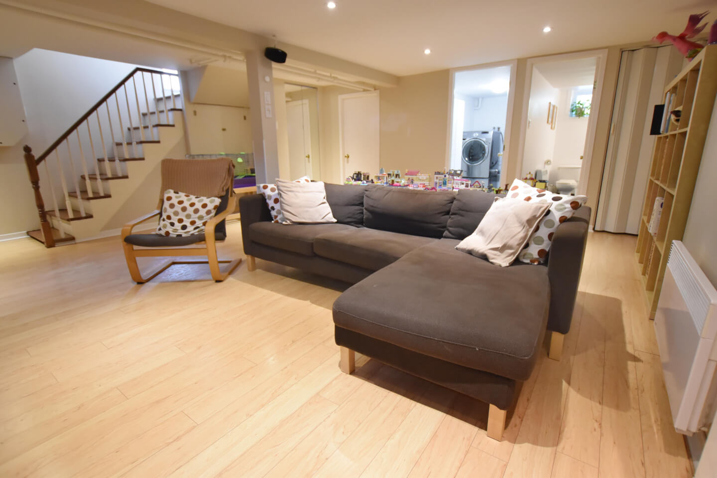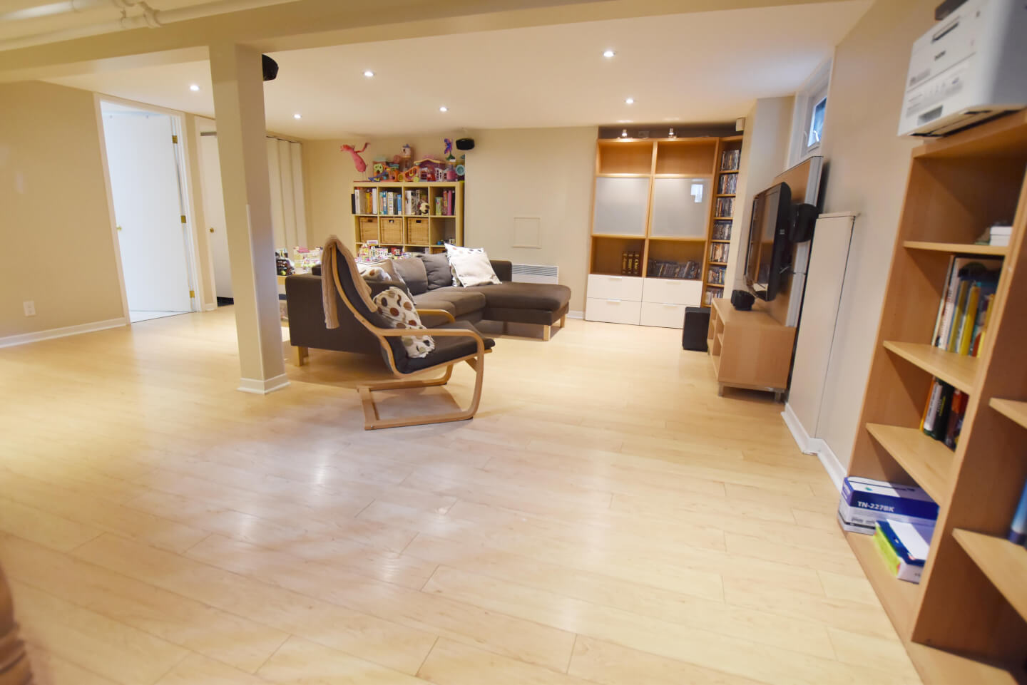 Sous-sol fini, avec plancher de bois flottant