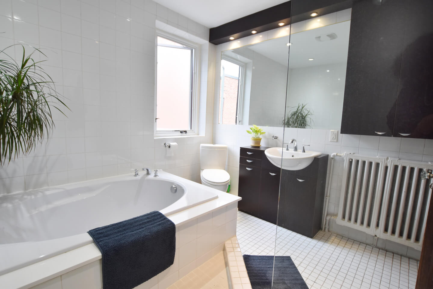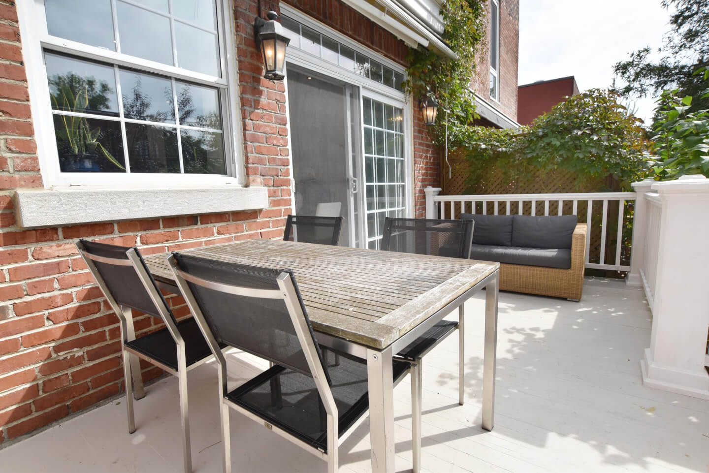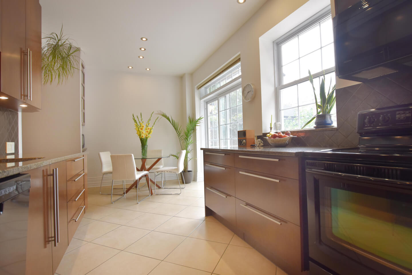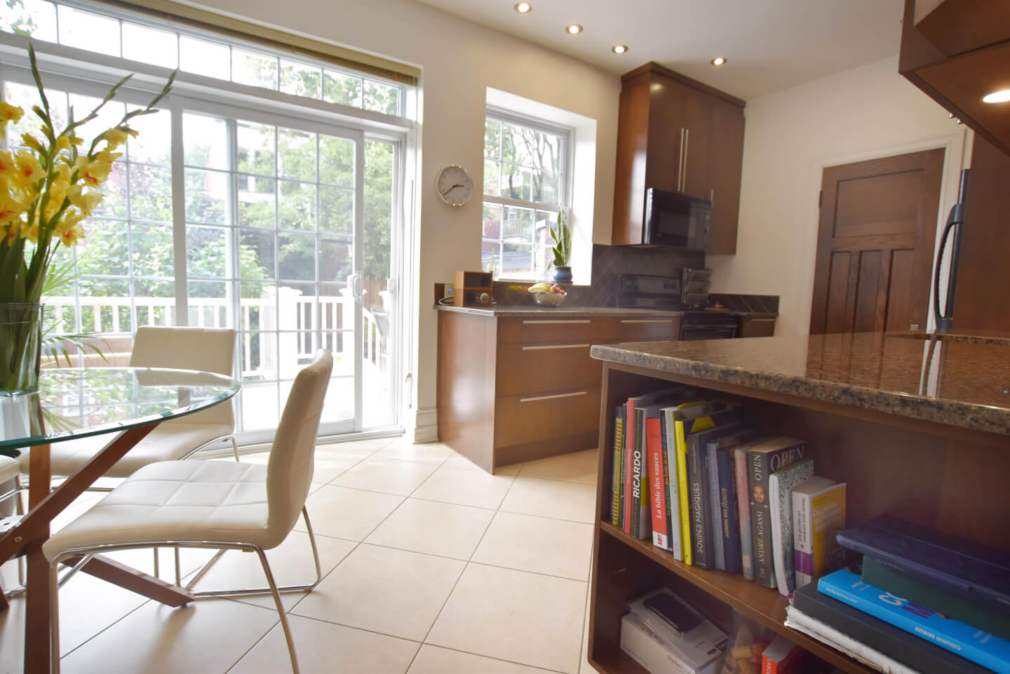 Sa cuisine design avec coin repas, comptoir de granit et plancher chauffant projetteront tous vos regards vers sa terrasse et son jardin urbain très privé.
