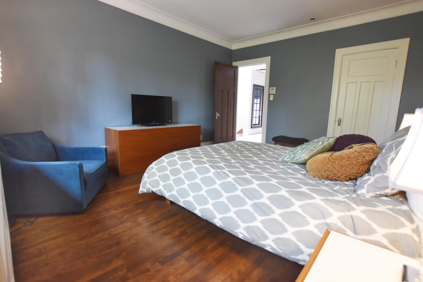 Planchers de chêne teints foncés, boiseries, poutres & portes françaises