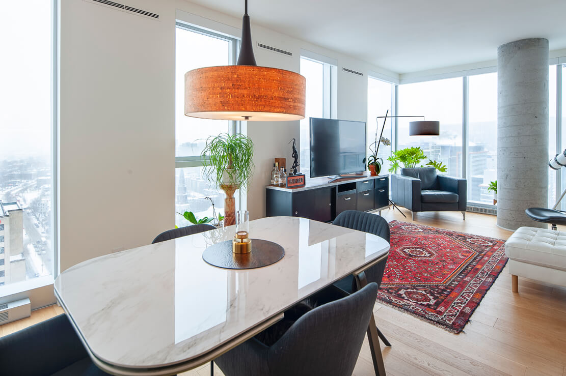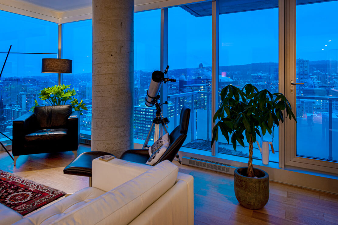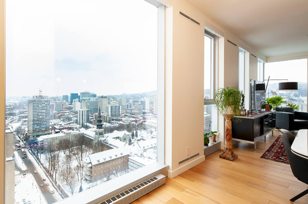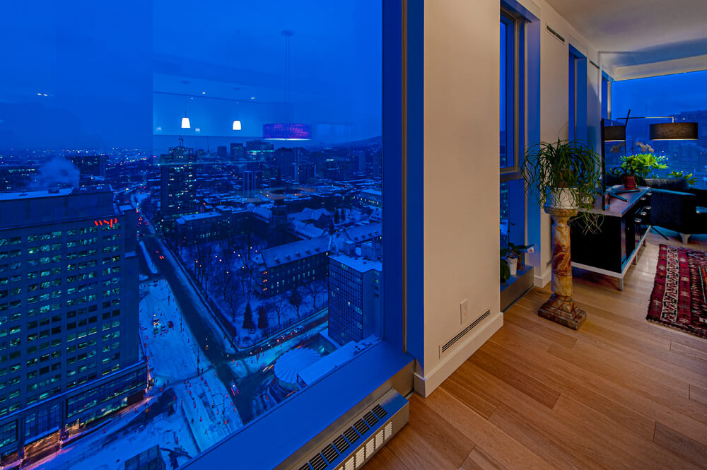 28ième étage : Unité de coin avec exposition des fenestrations sur 3 côtés