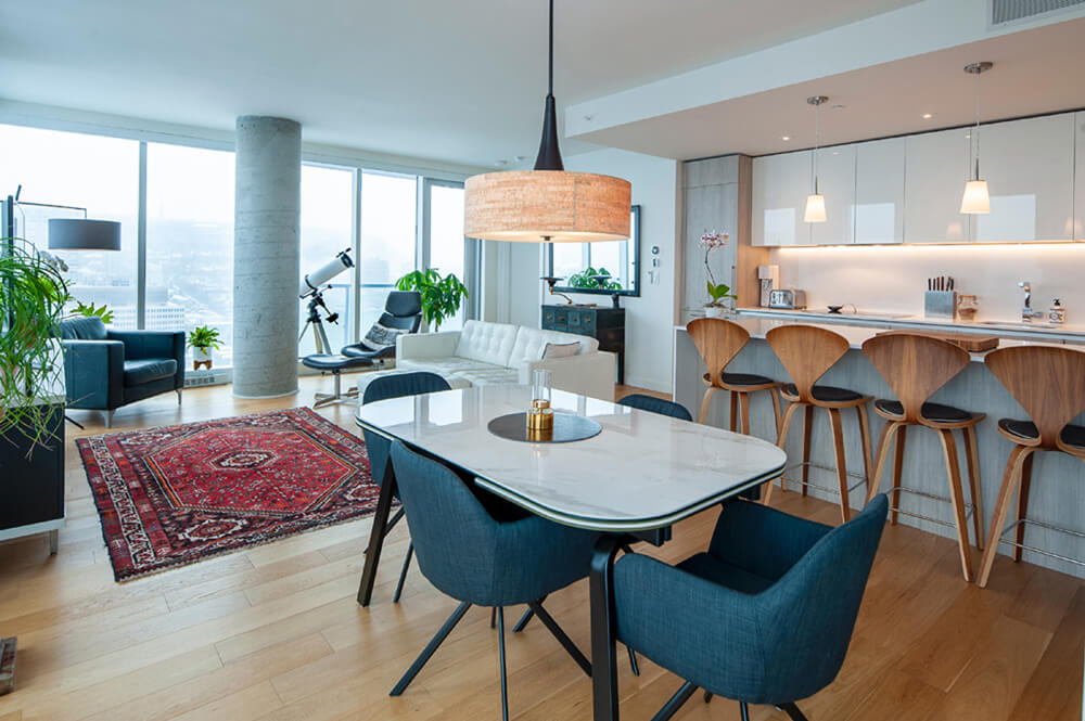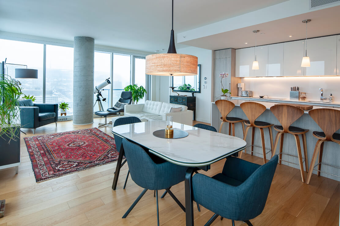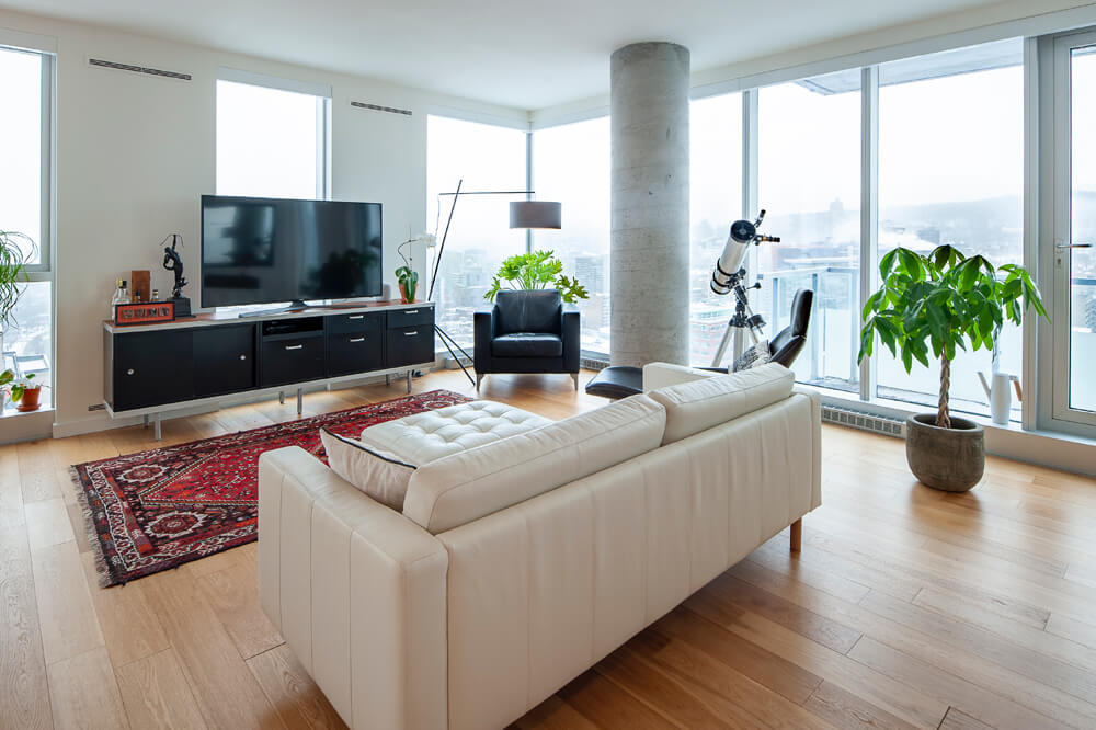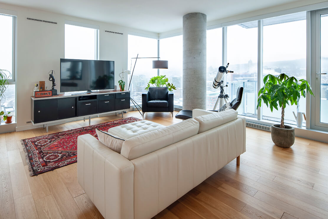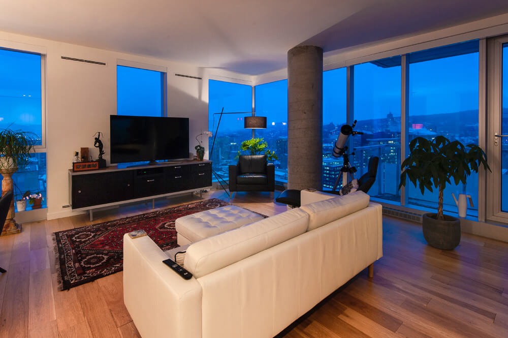 28ième étage : Unité de coin avec exposition des fenestrations sur 3 côtés