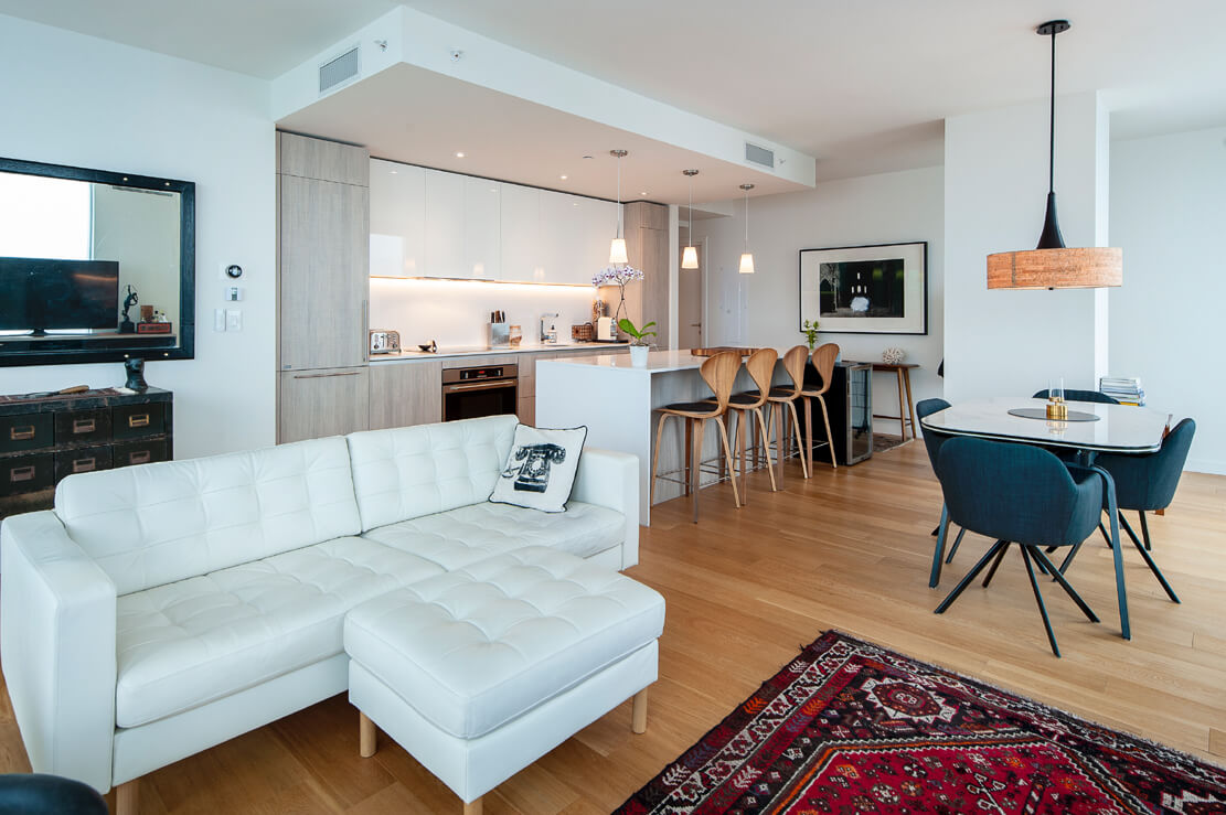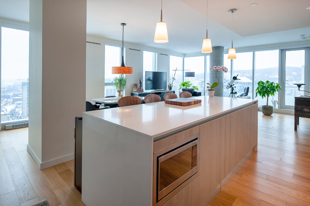 Le tout sur de magnifiques plancher de bois d’ingénierie