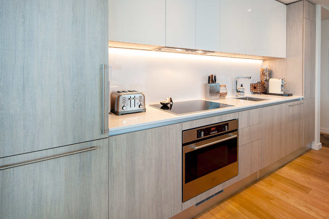 Cuisine, comptoir et dosseret de Quartz, îlot central / déjeuner, Appareils haut de gamme