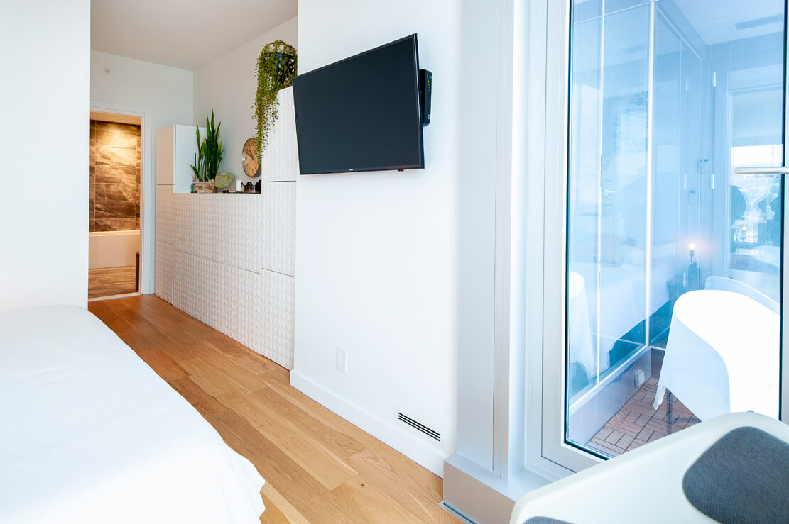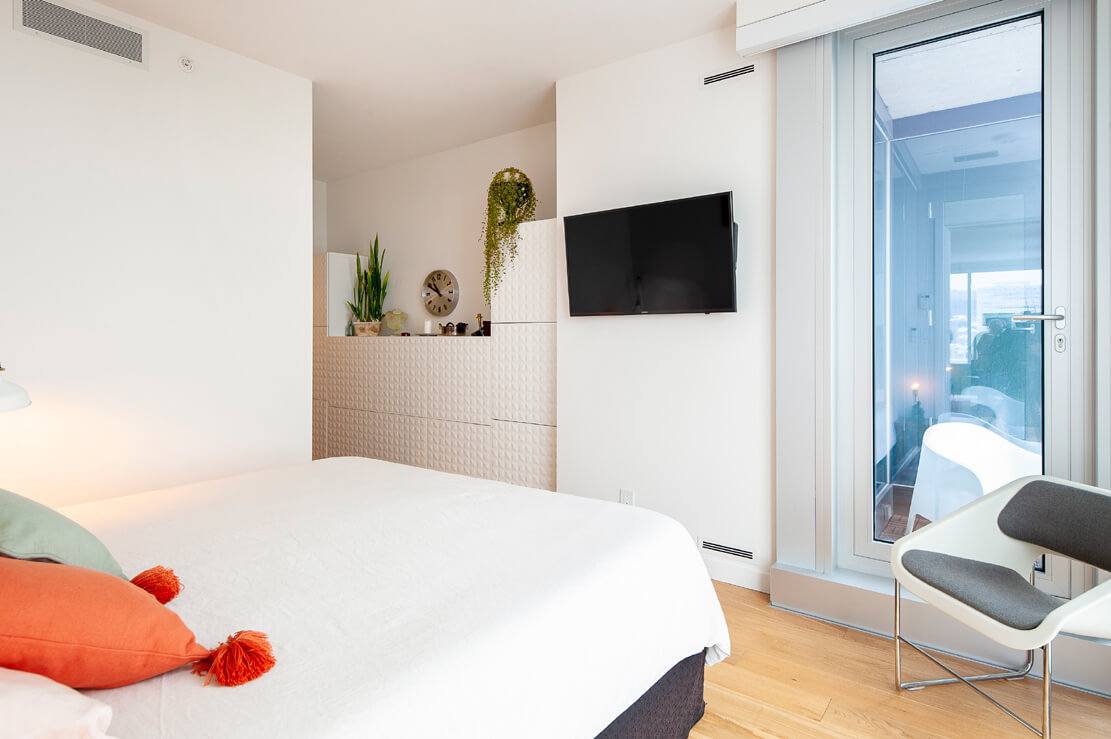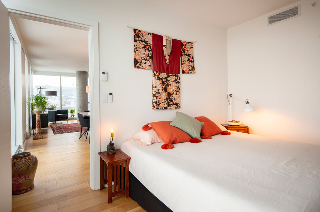 Chambre à coucher principale, orientation vers l’Ouest avec son Loggia