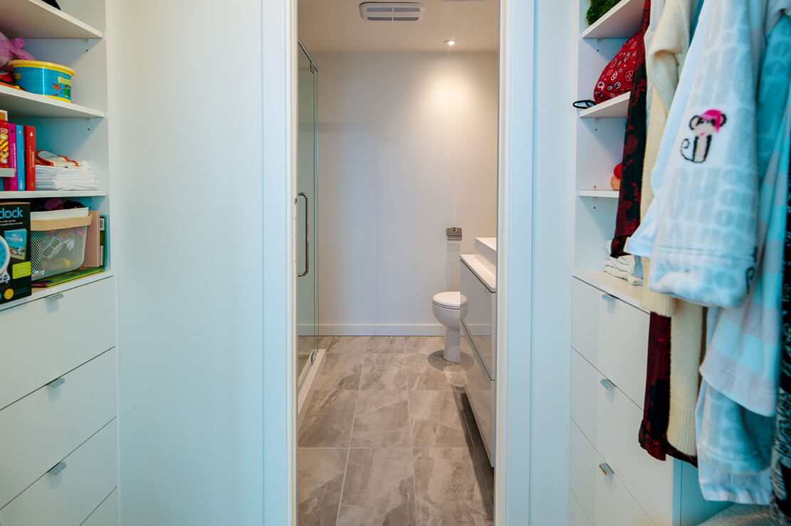 Chambre principale, orientation vers l’Ouest avec son Loggia Grand Walk-in ainsi qu’une unité de rangement mural Grande Salle de bains attenante (Ensuite) 2ième Chambres; Grand placard / Salle de bains attenante (Ensuite) Lavoir superposé, à même l’unité