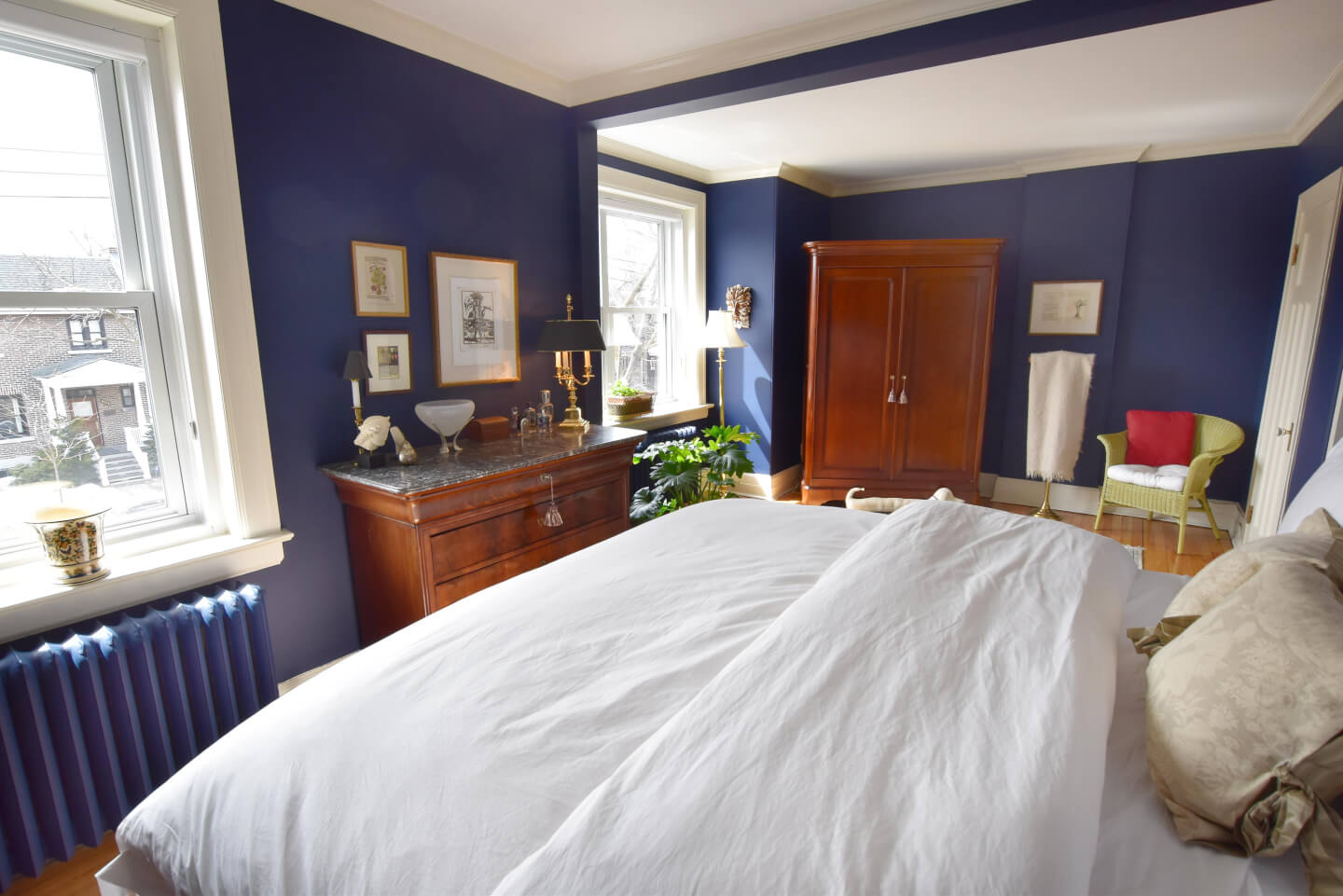 La grande chambre des maîtres dispose de toute la largeur de la façade