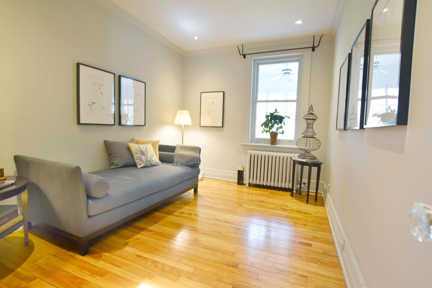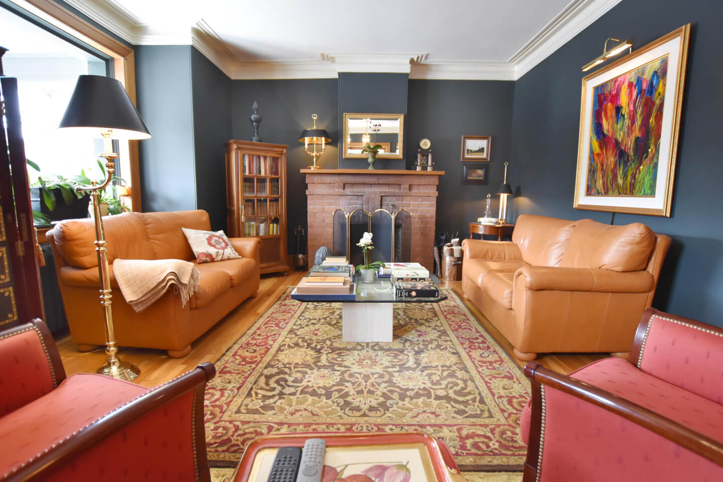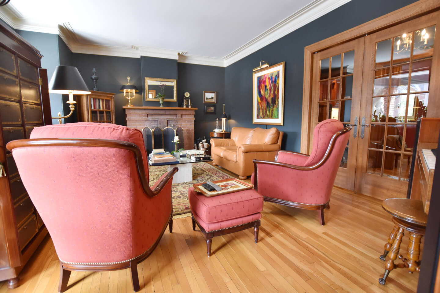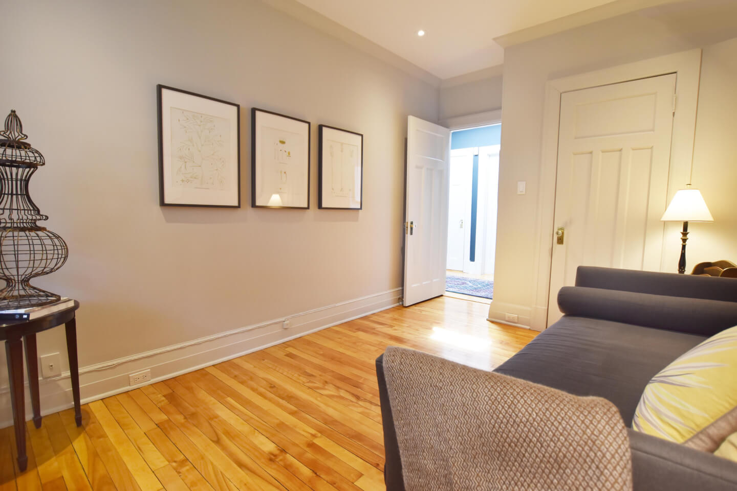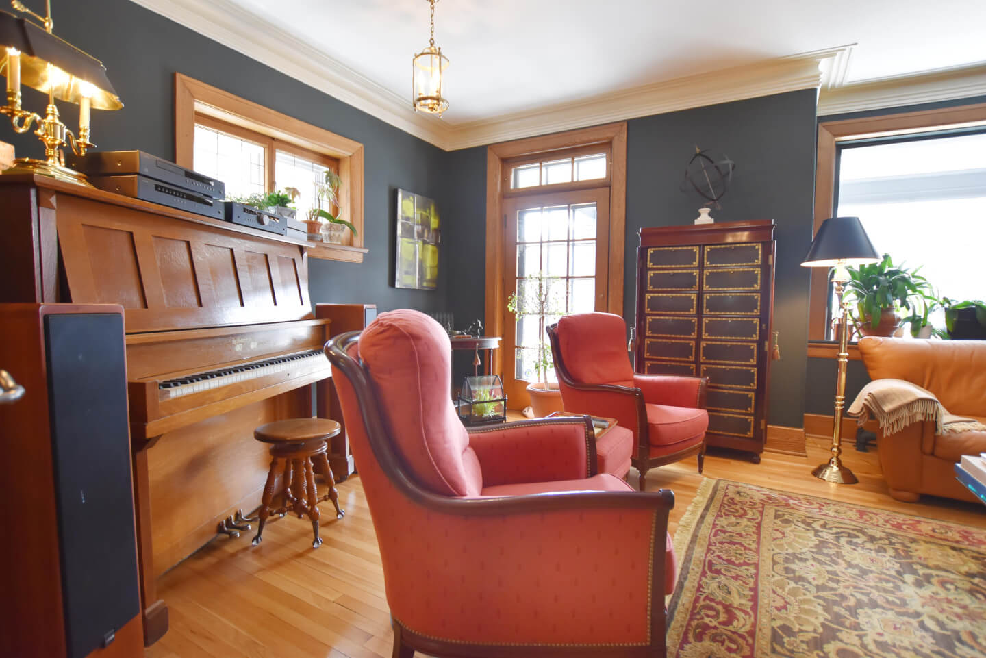 Le salon dispose de toute la largeur de la façade et jouit d’une belle véranda (foyer non fonctionnel selon la règlementation de la Ville de Montréal)