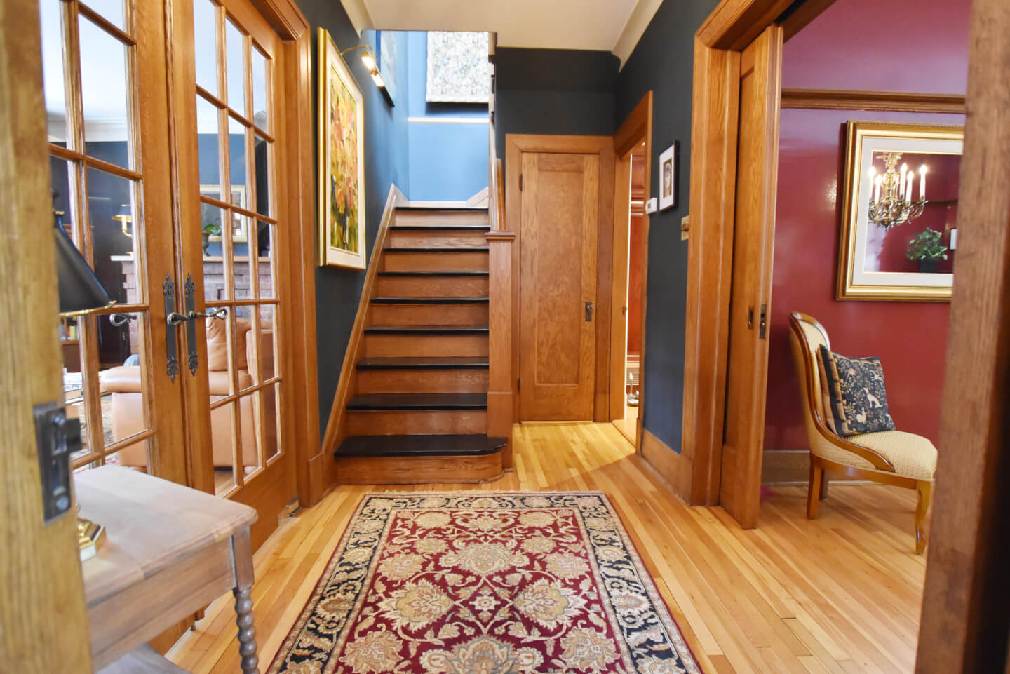 Planchers de chêne, bois franc et magnifiques boiseries et portes françaises