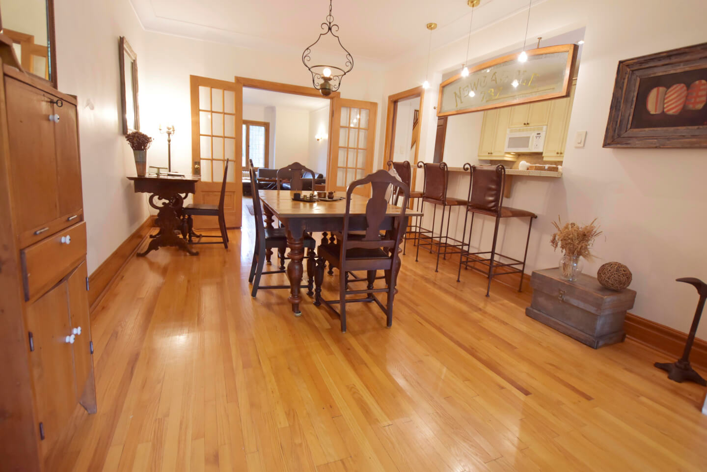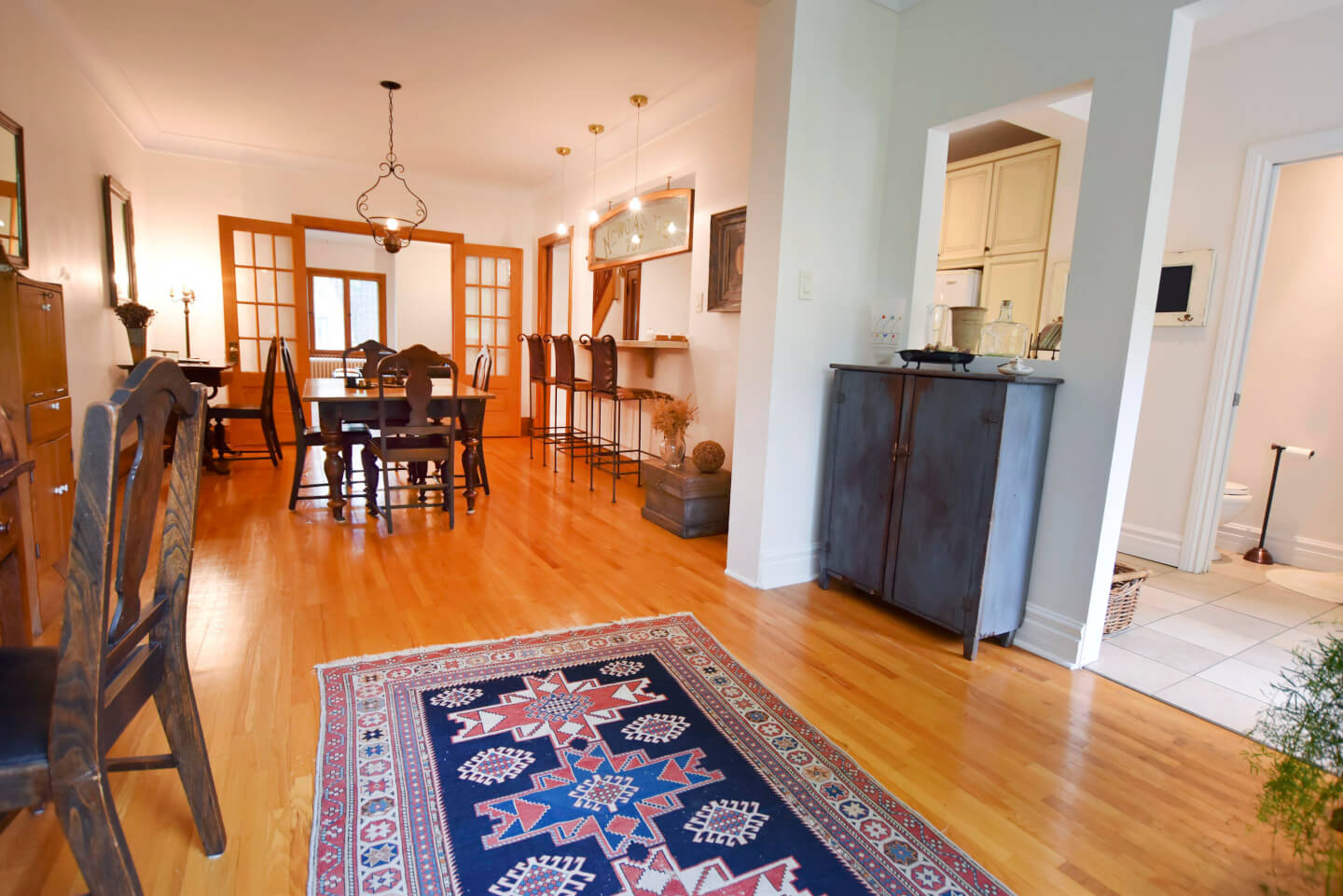 Grand salon (foyer d’origine 1928) ouvert sur la salle à manger