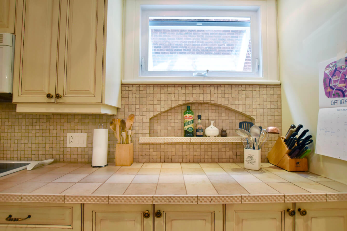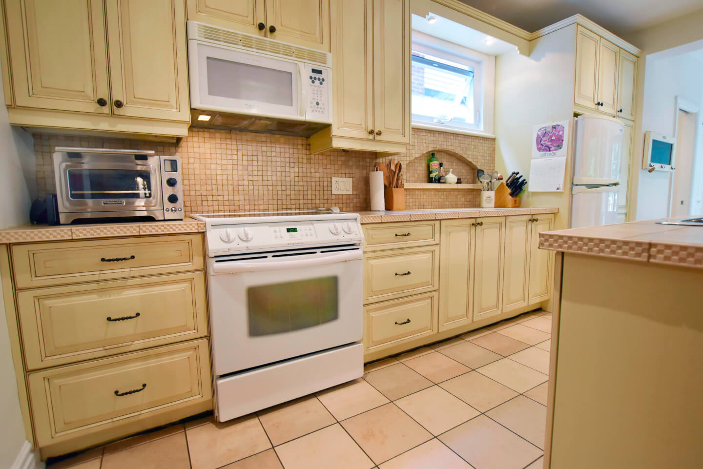Spacieuse Cuisine, comptoir et plancher de céramique