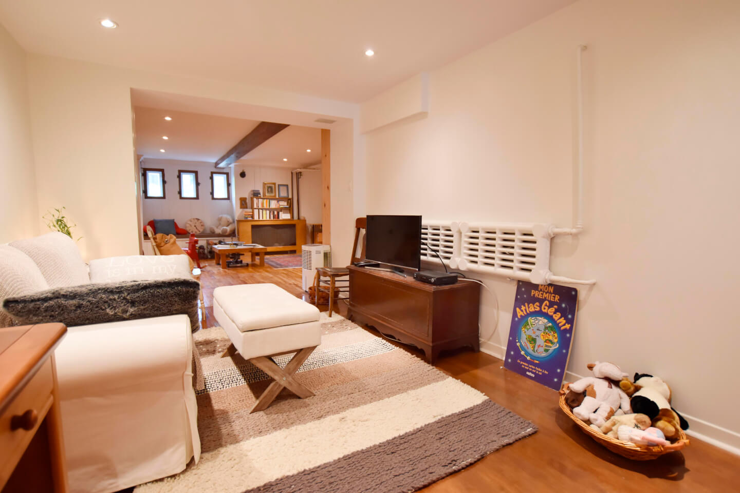 Sous-sol fini, avec plancher de bois franc Hauteur des plafonds 7’-4’’ Salle familiale Salle de Télé 4ième Chambre à coucher sur plancher de bois flottant Salle de bains /Lavoir
