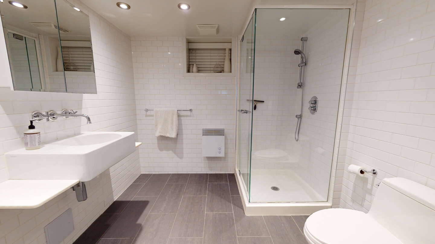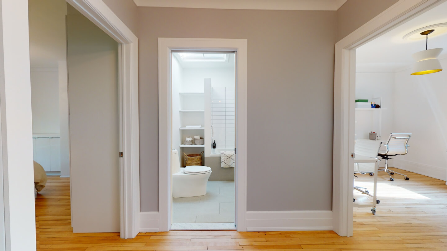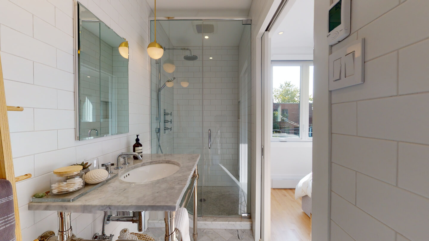 Superbe salle de bains avec puits de lumière et plancher radiant