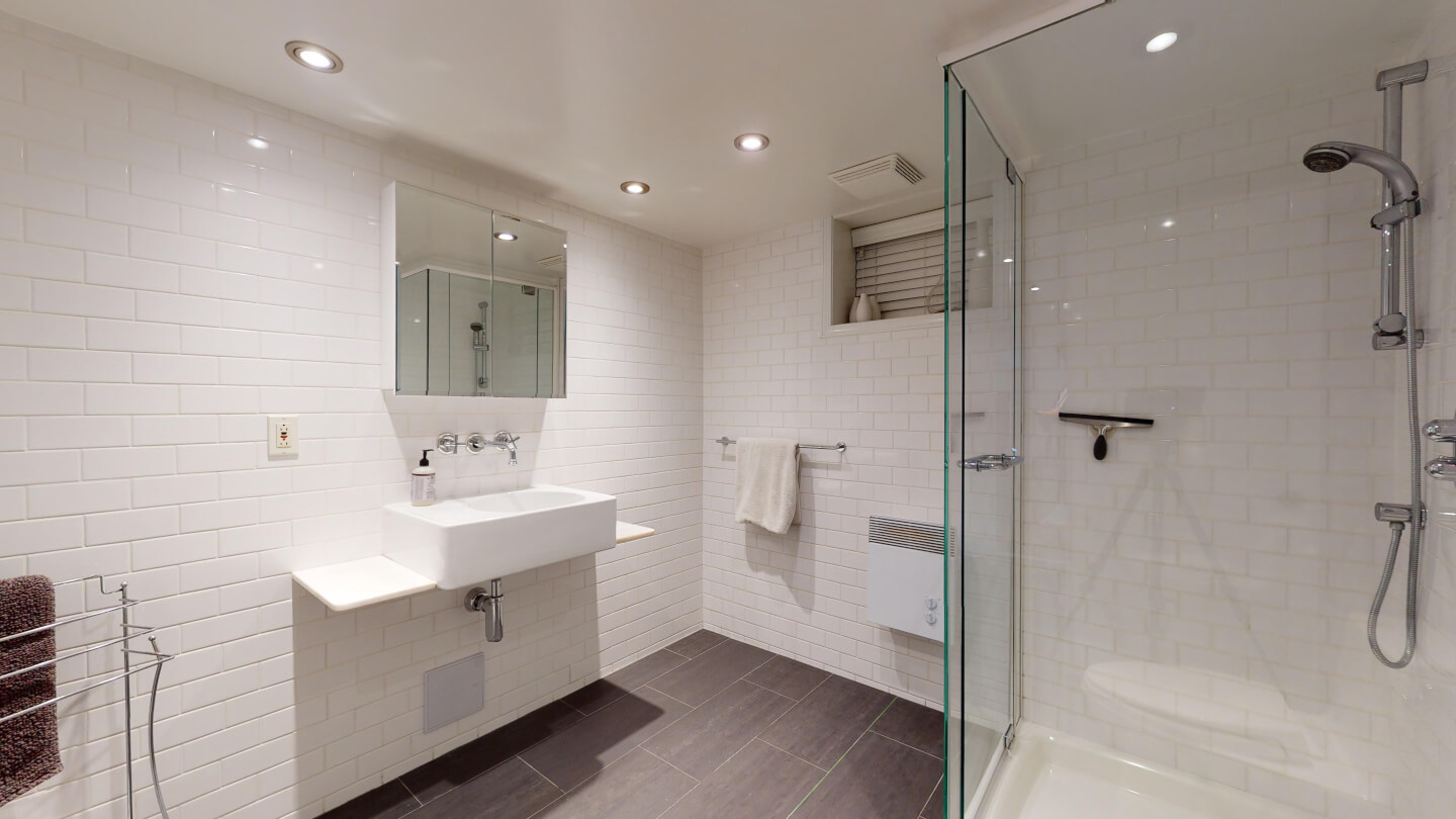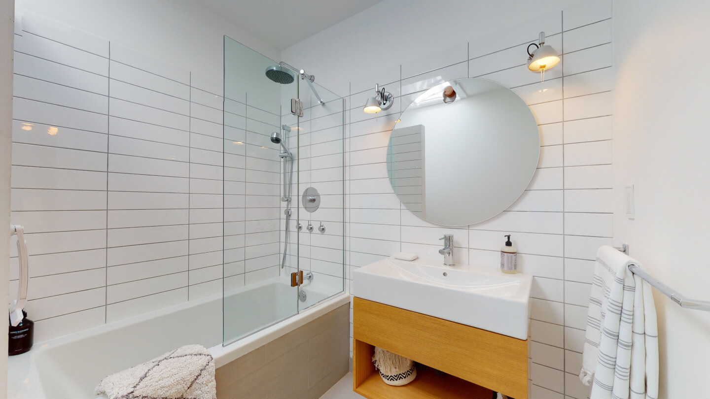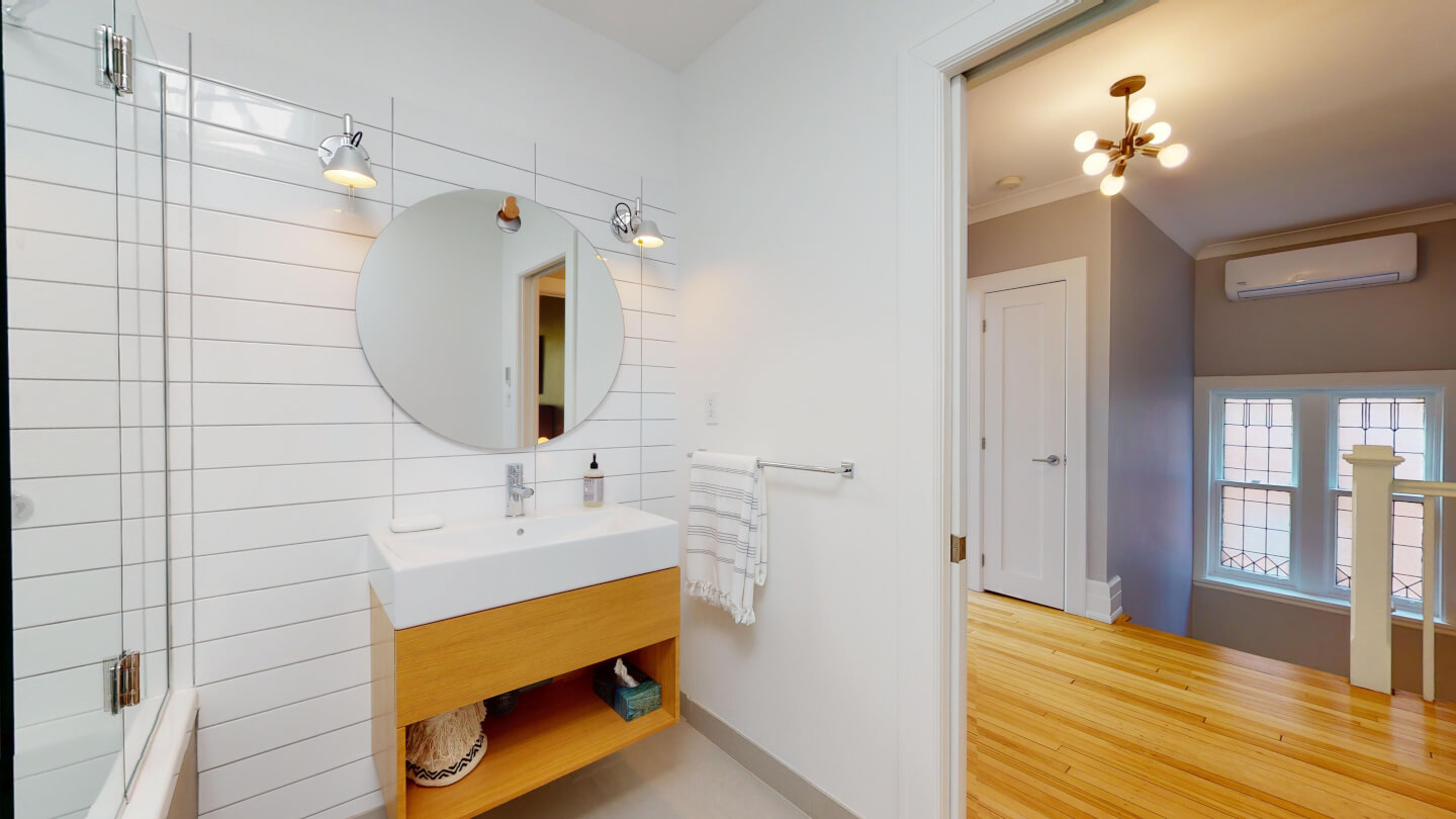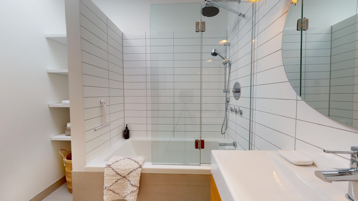 Superbe salle de bains avec puits de lumière et plancher radiant