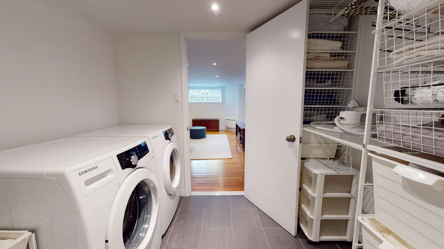 Électroménagers (Réfrigérateur, cuisinière, hotte, lave-vaisselle, four micro-ondes, laveuse, sécheuse), unité d'air climatisé, aspirateur central + accessoires