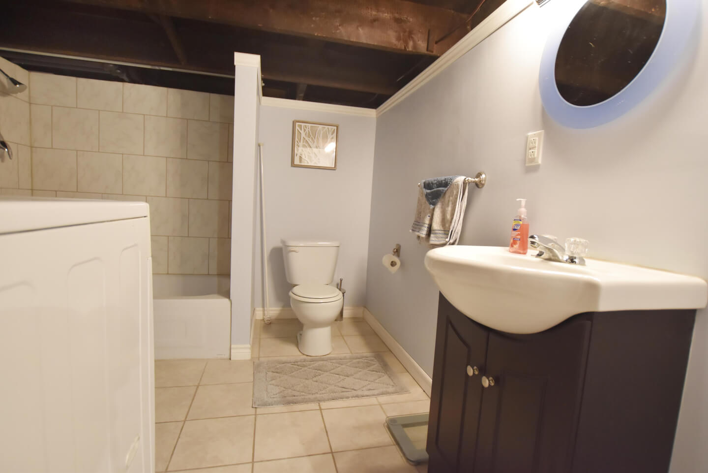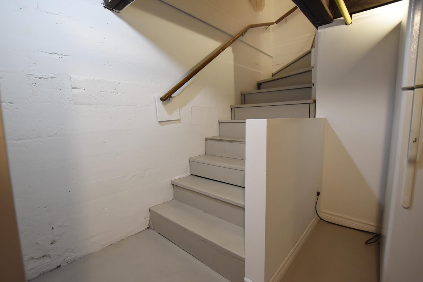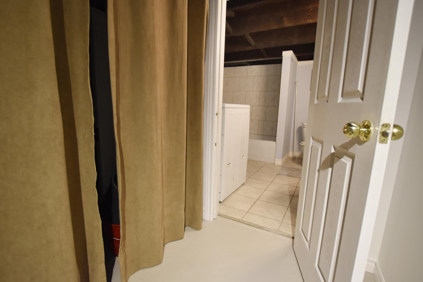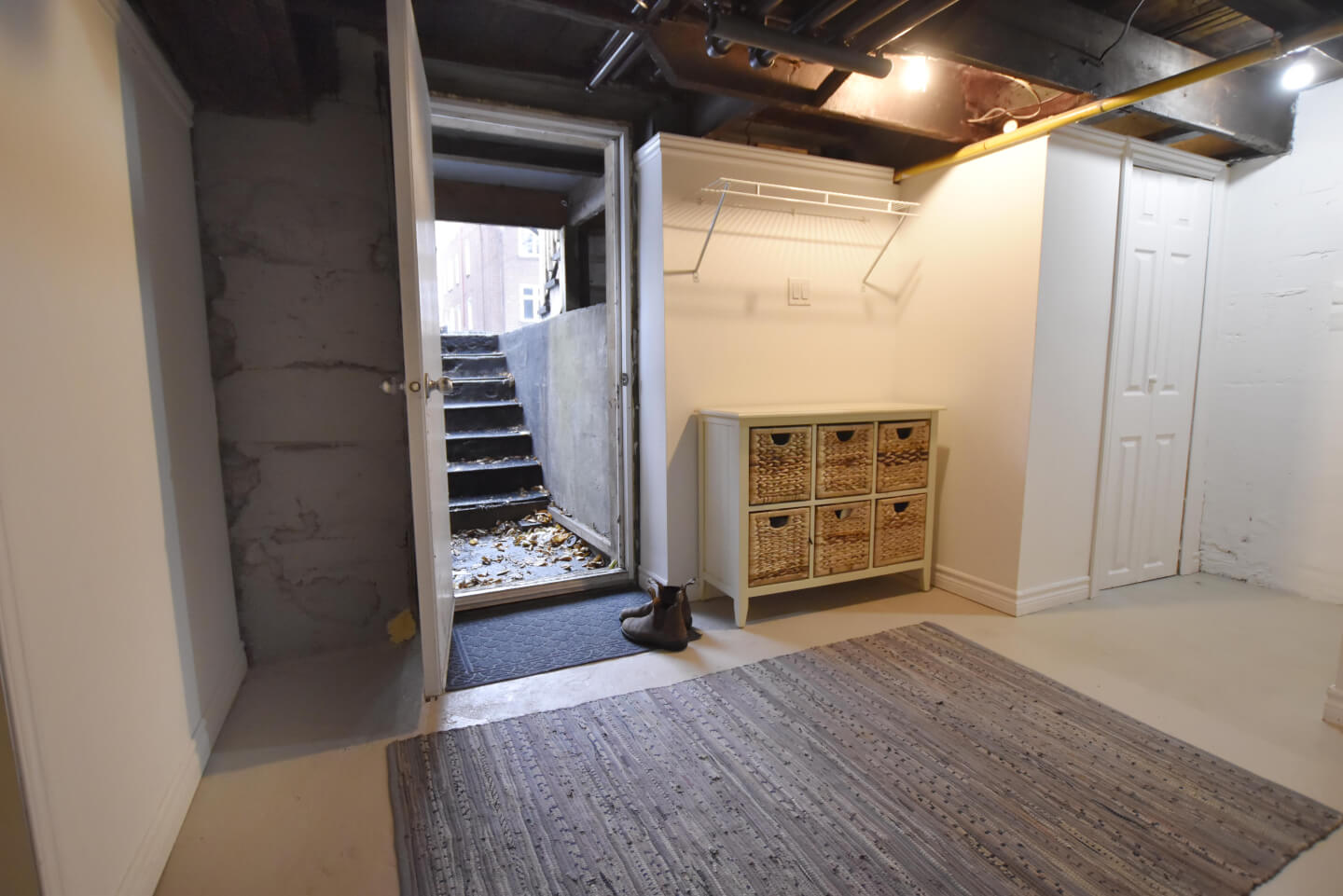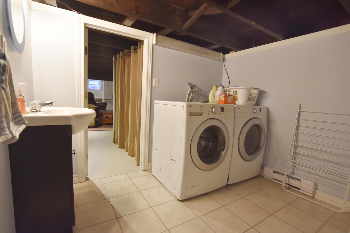 Sous-sol fini, plancher de béton avec solives exposées