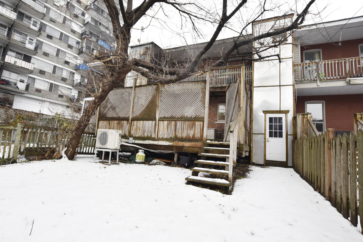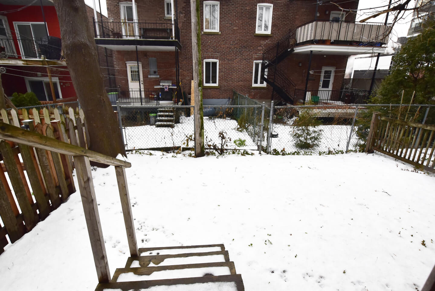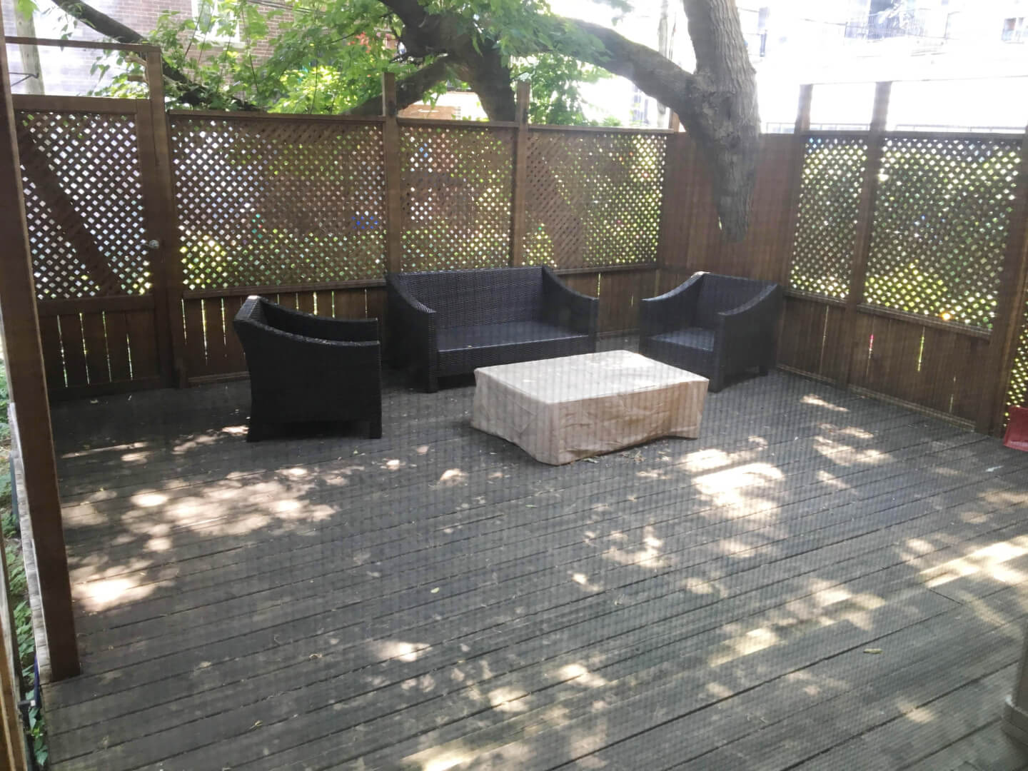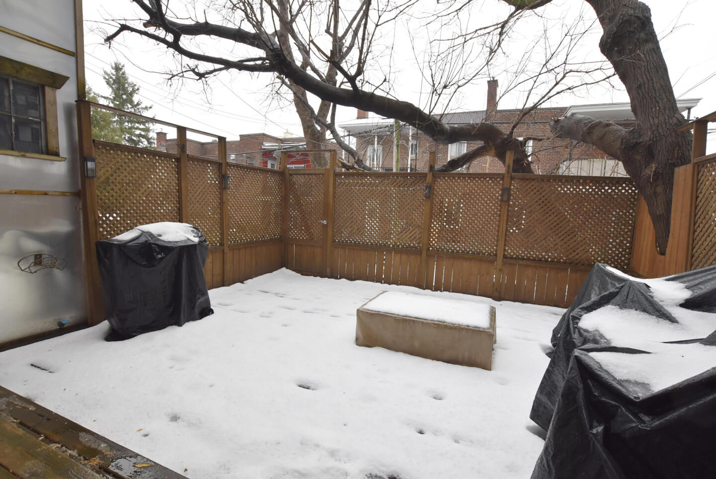 Jardin côté ouest, exclusif au bas //présentement un grand patio en bois et jardin clôturé