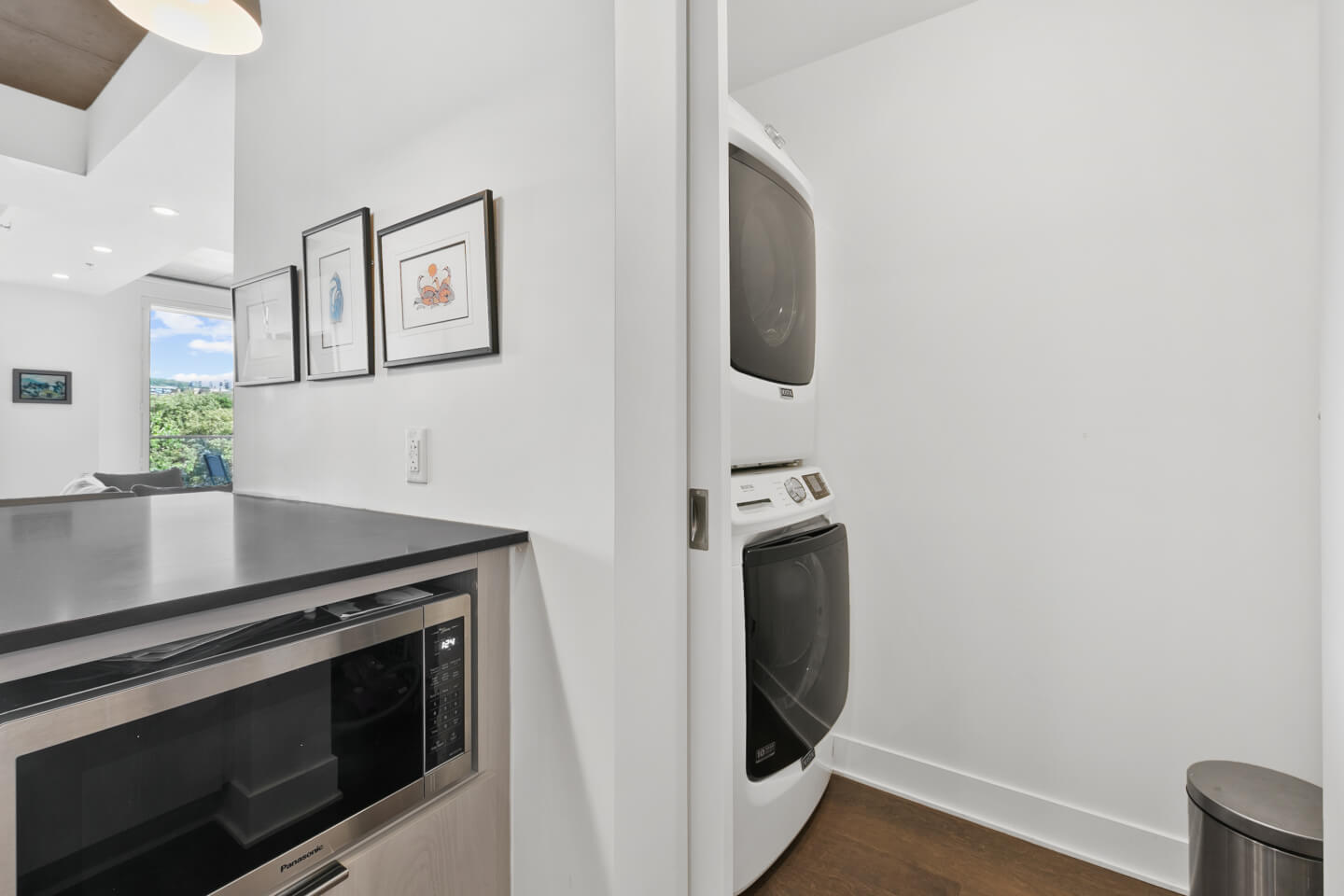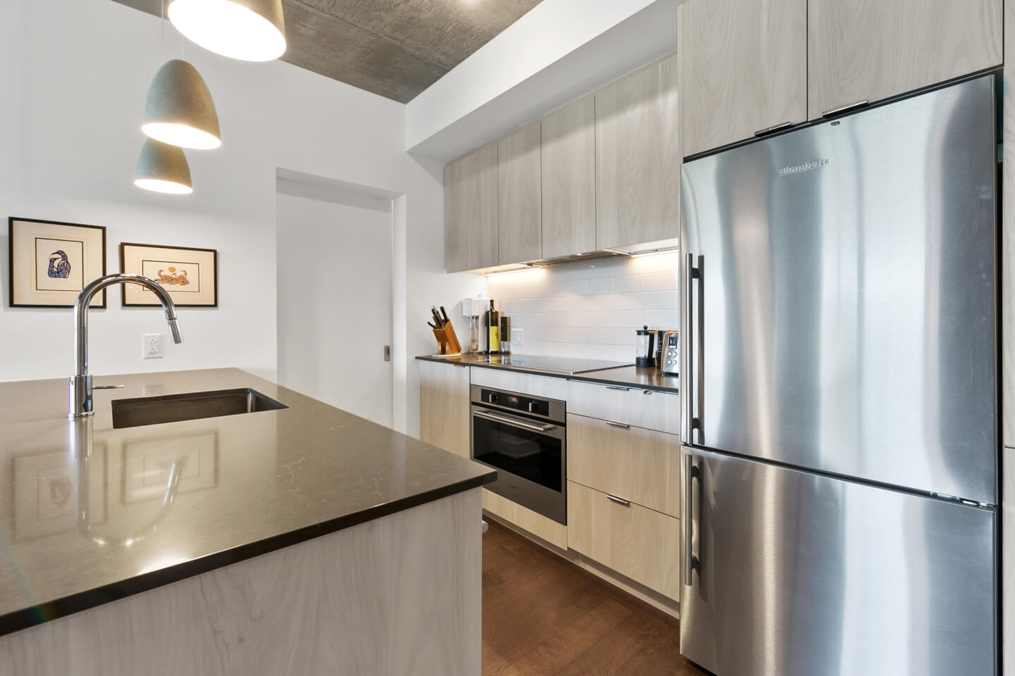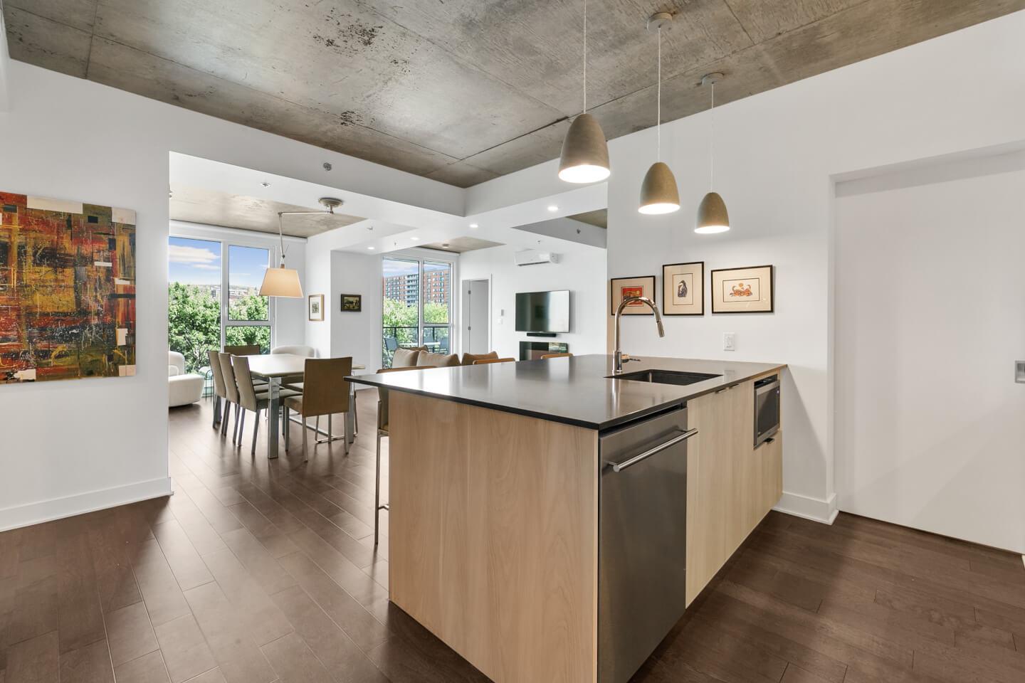 Cuisine, comptoir de QUARTZ, comptoir déjeuner, placard européen *lavoir* et le tout sur bois d’ingénierie