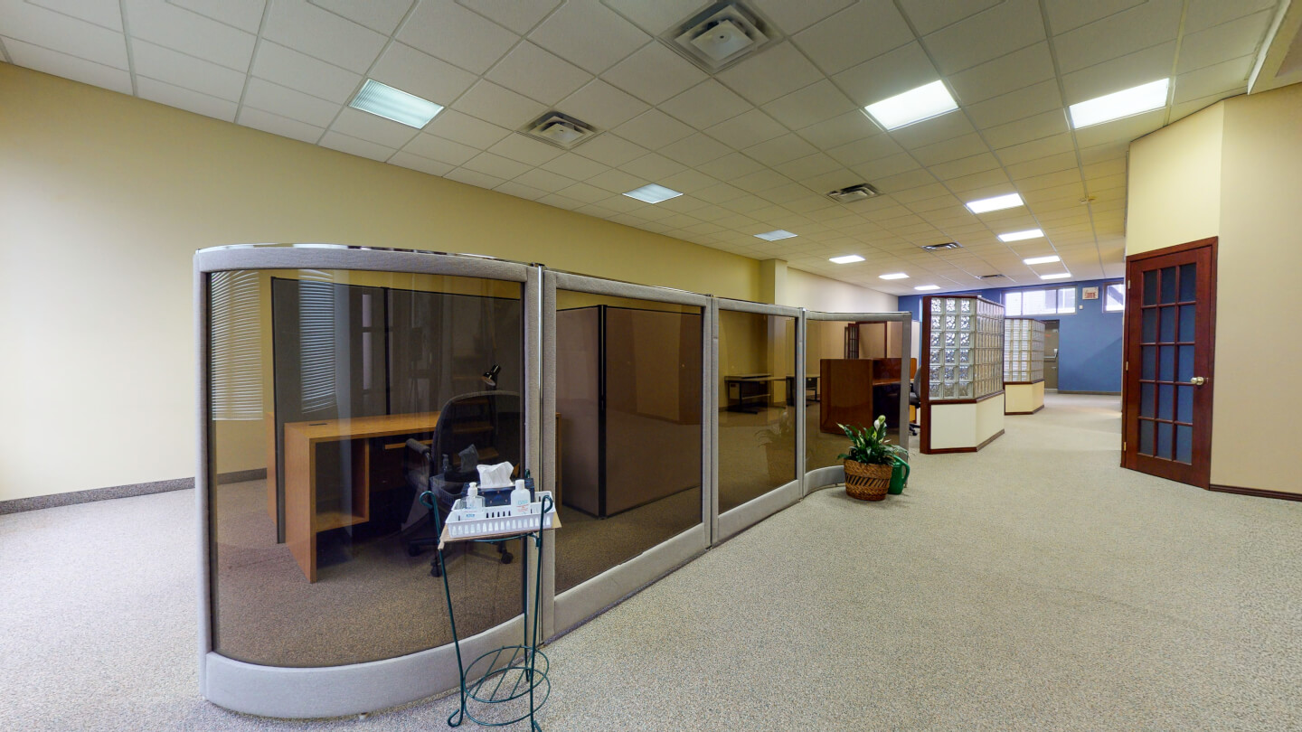 Espace de travail ouvert avec panneaux de séparation et cloisons