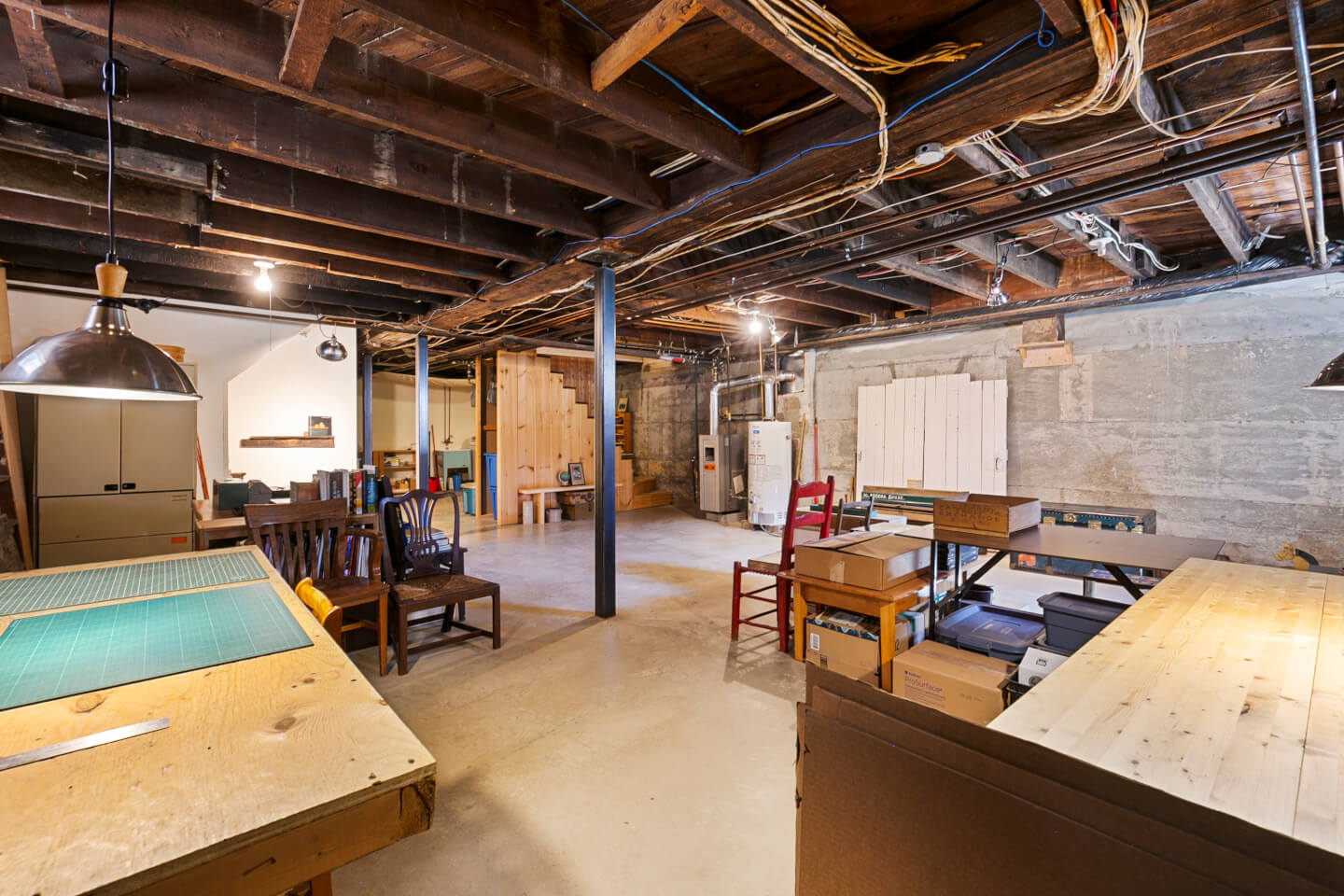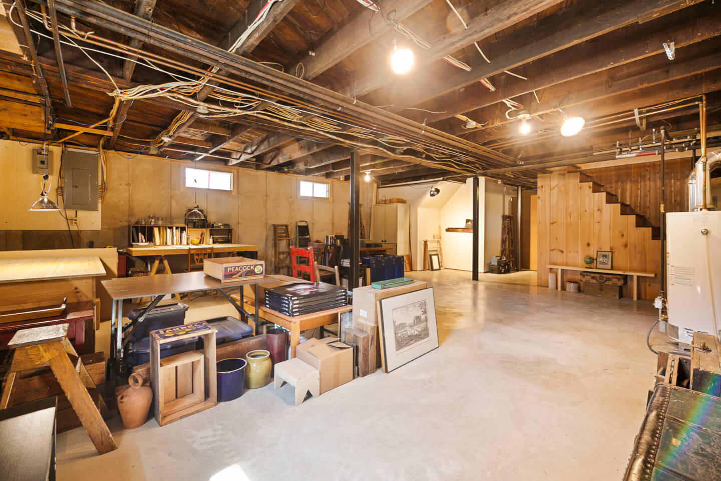 Exclusions : Luminaire antique du salon, luminaires suspendus du sous-sol, étagères décoratives dans toutes les pièces